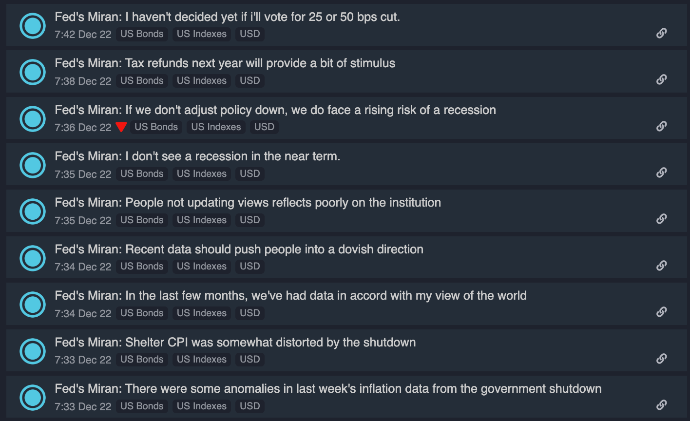 Looks like we had a nice small gap-up overnight and then Fed's Miran Speak on Bloomberg TV helping to drive us higher.