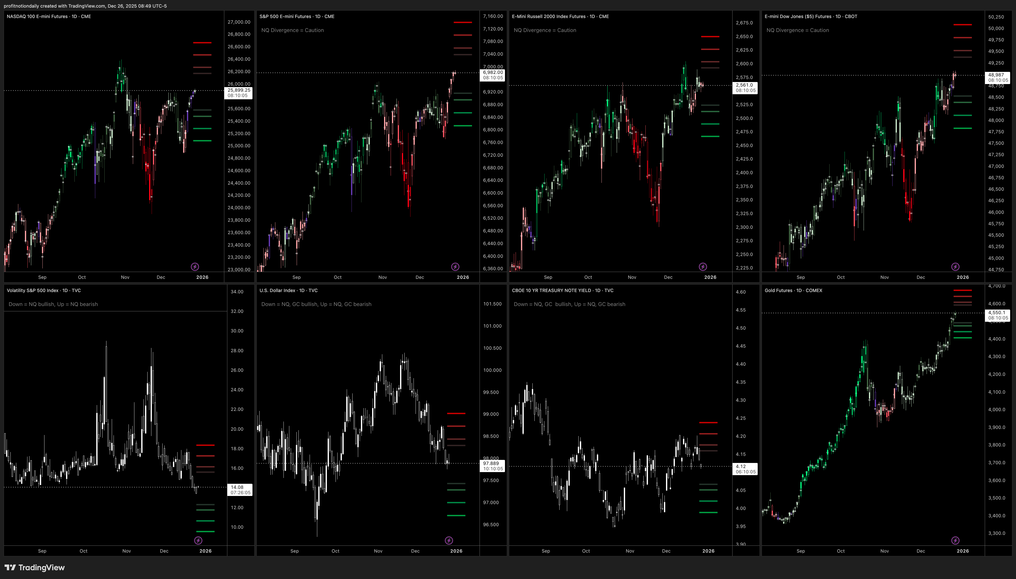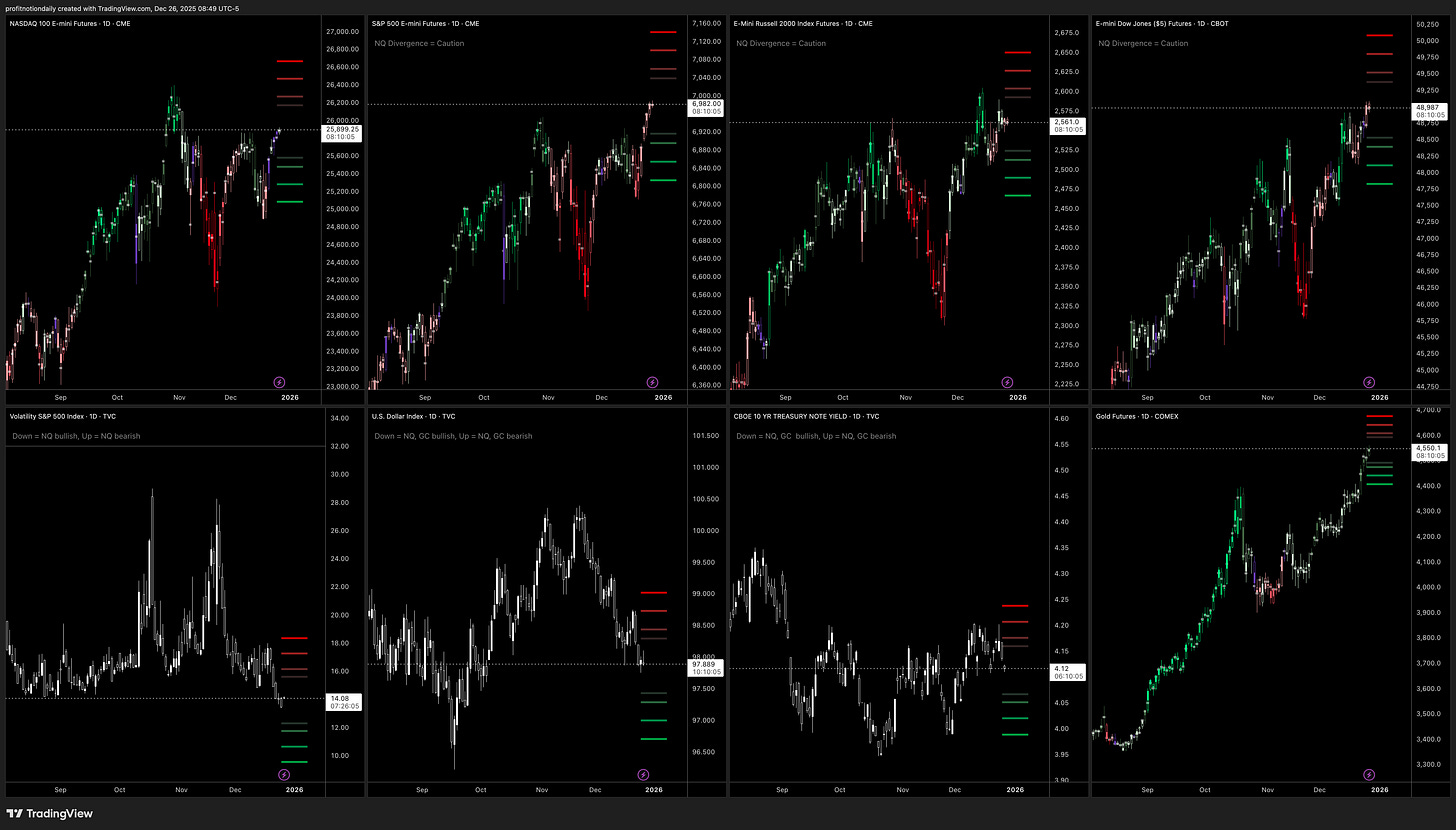 $NQ: Bullish (tech rally, AI momentum; thin holiday trade).