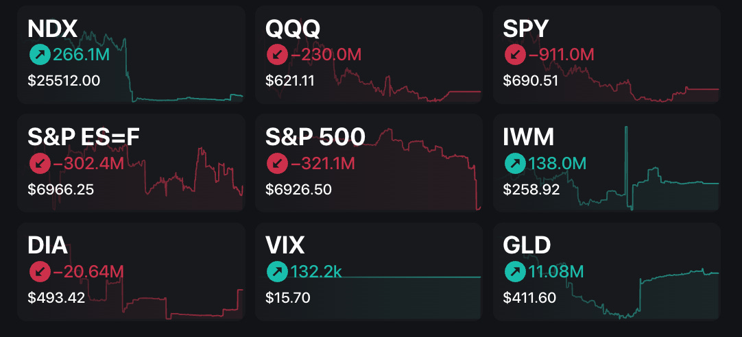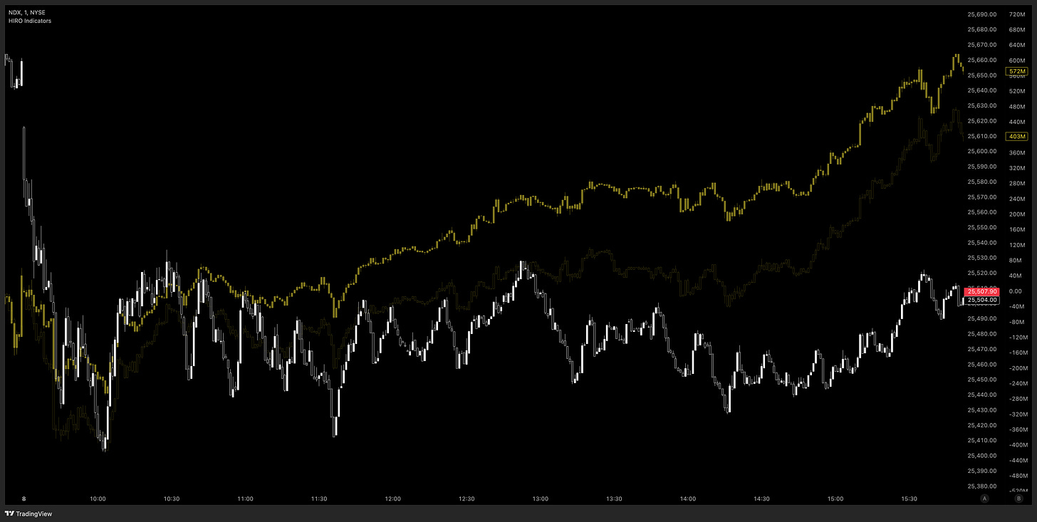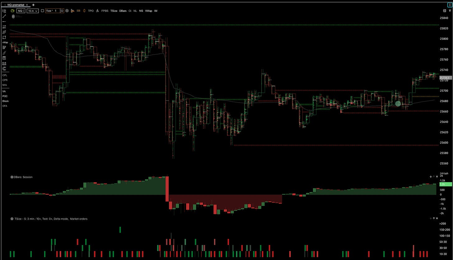 🟡 NQ feels neutral given we’re forming a wedge on the daily, options flow is mixed, and CVD is red the last two days.