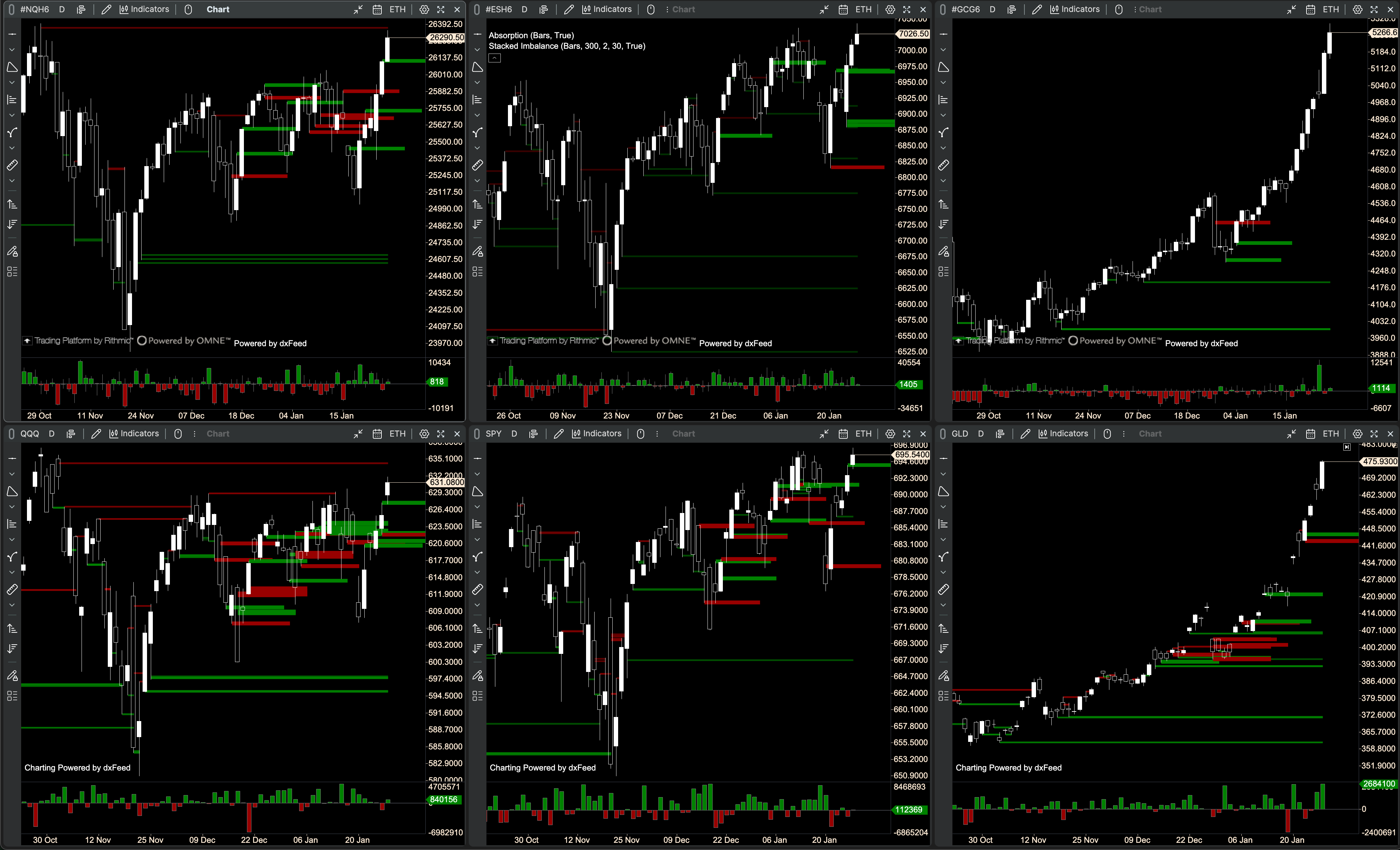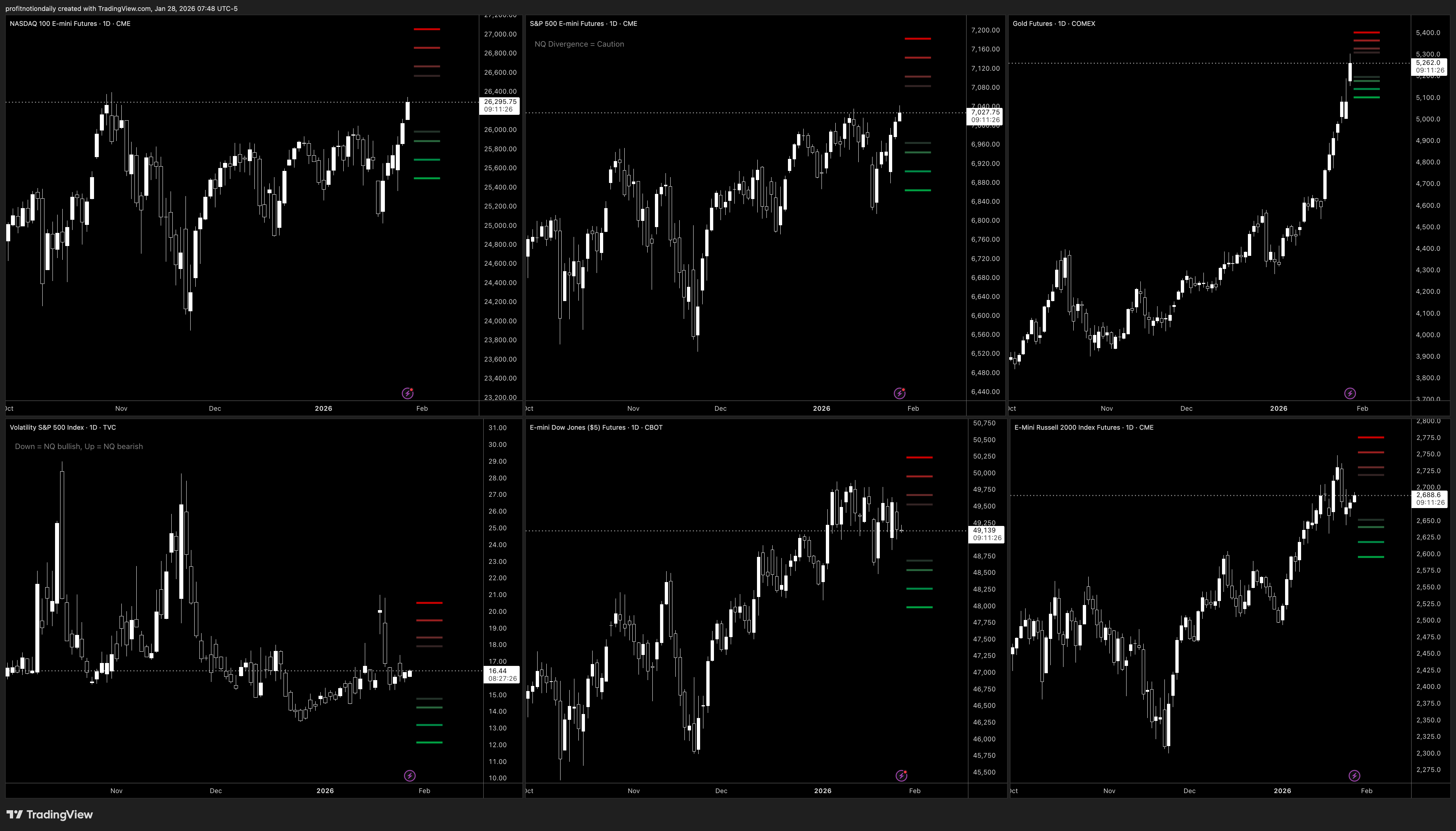 📊 $NQ/$QQQ, $ES/$SPY, $GC/$GLD, $VIX, $YM/$DIA, $RTY/$IWM