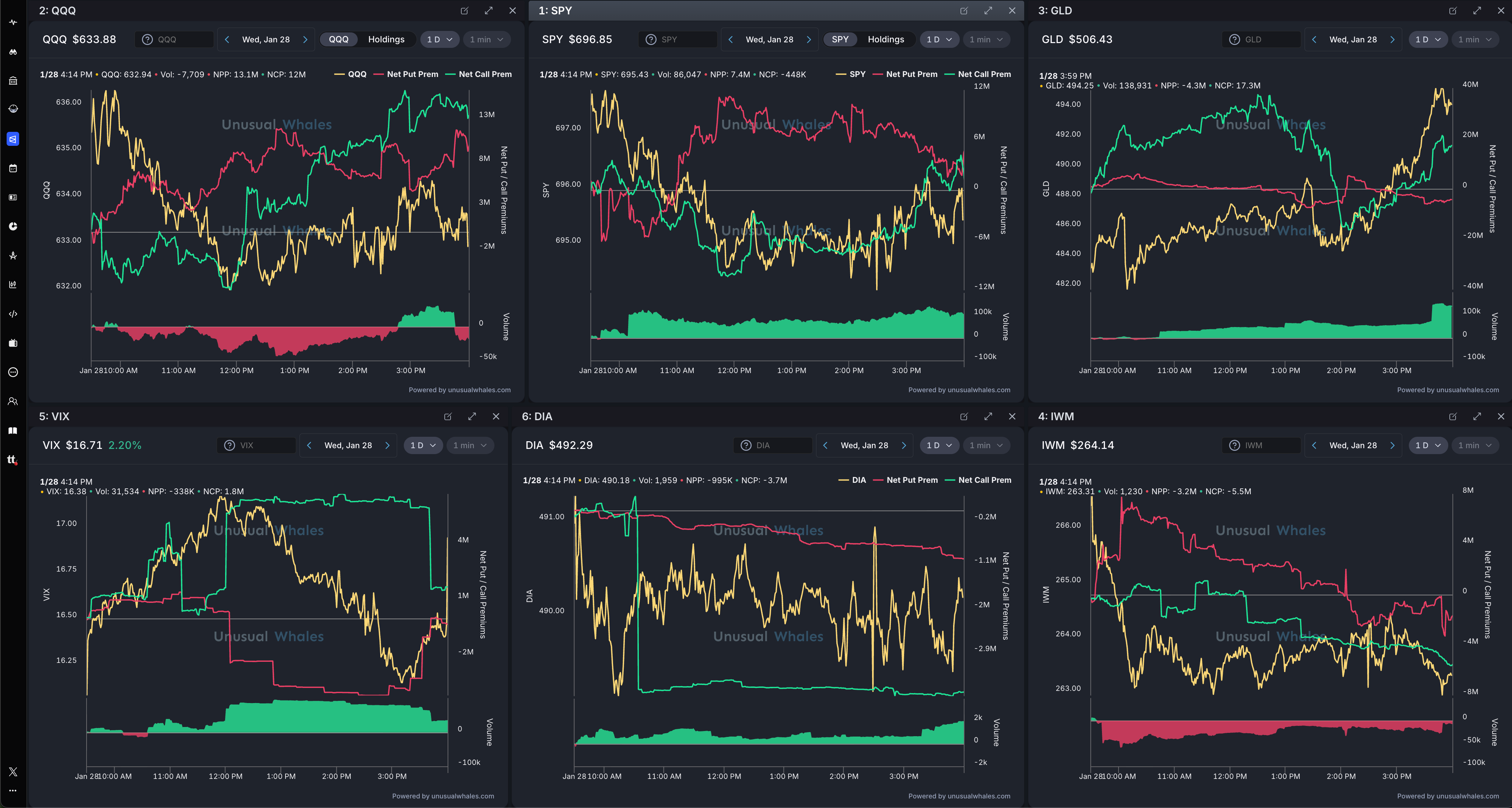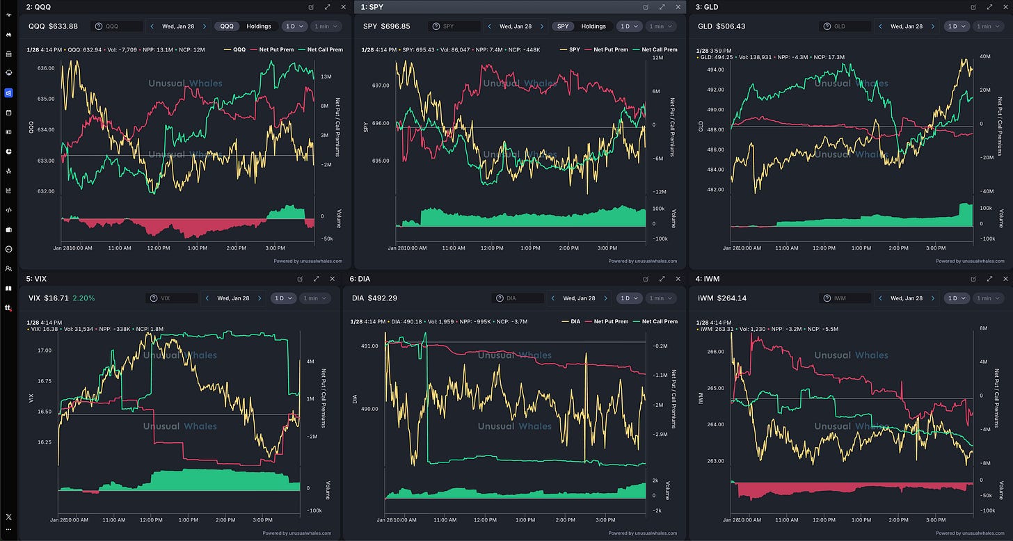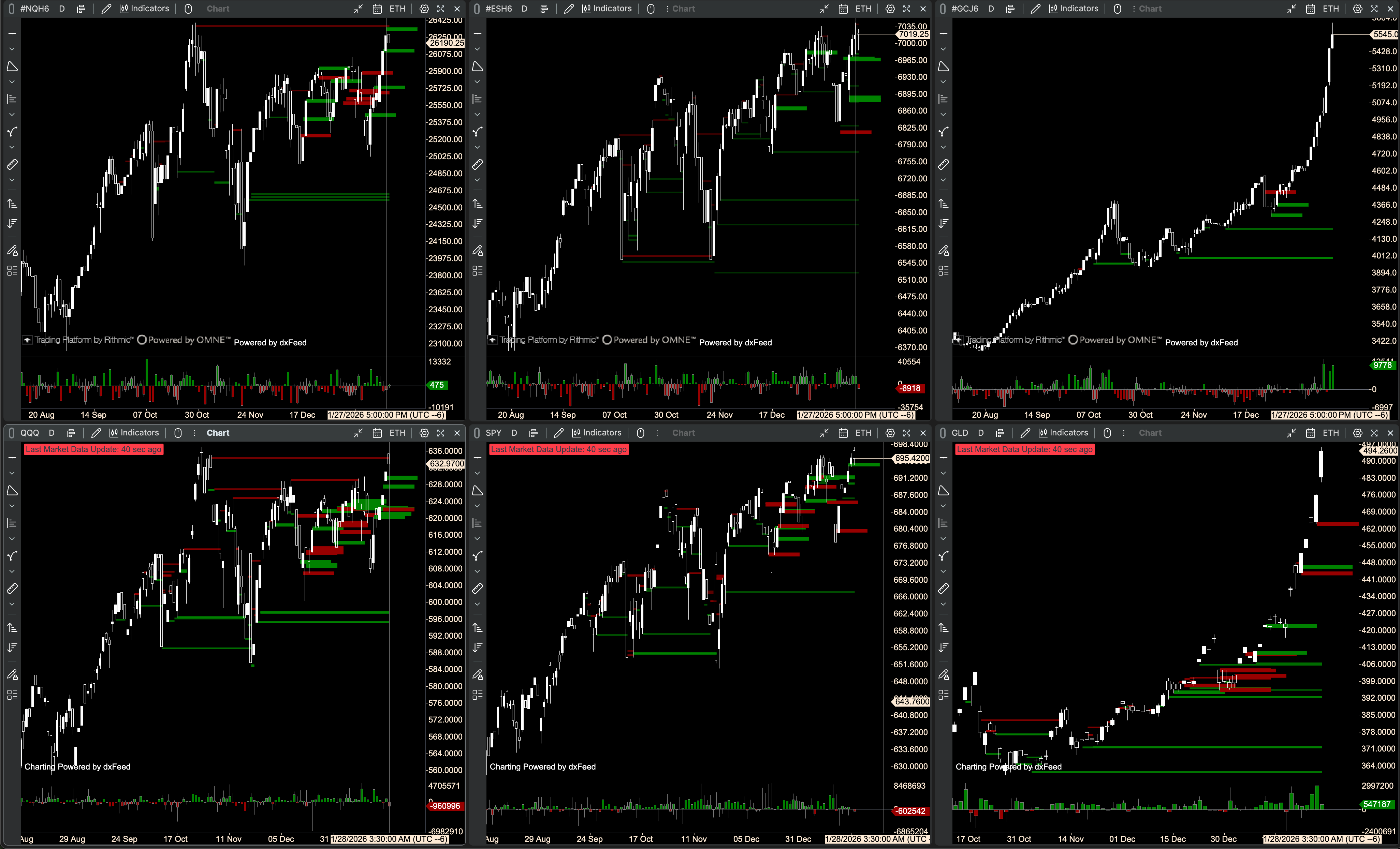 📊 $NQ/$QQQ, $ES/$SPY, $GC/$GLD, $VIX, $YM/$DIA, $RTY/$IWM