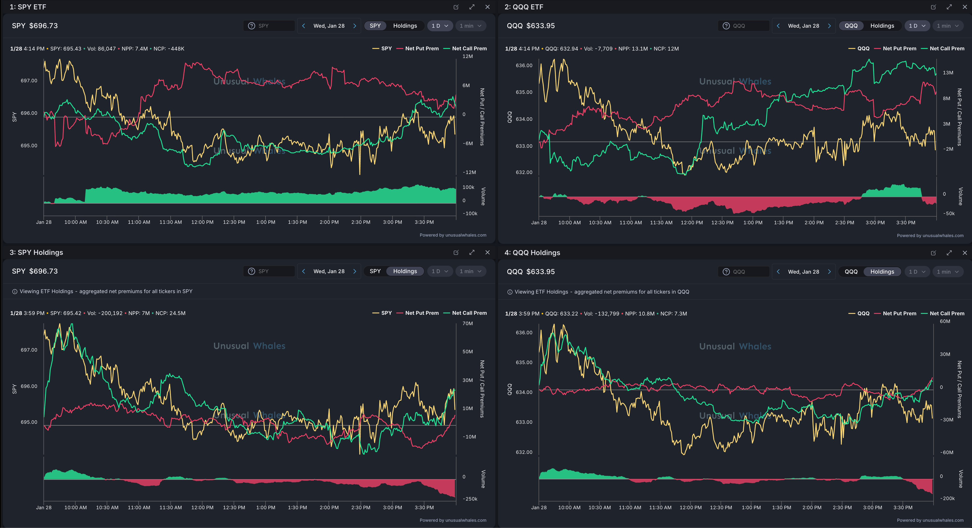 QQQ/SPY Options Flow & Delta (ETF v Holdings):
