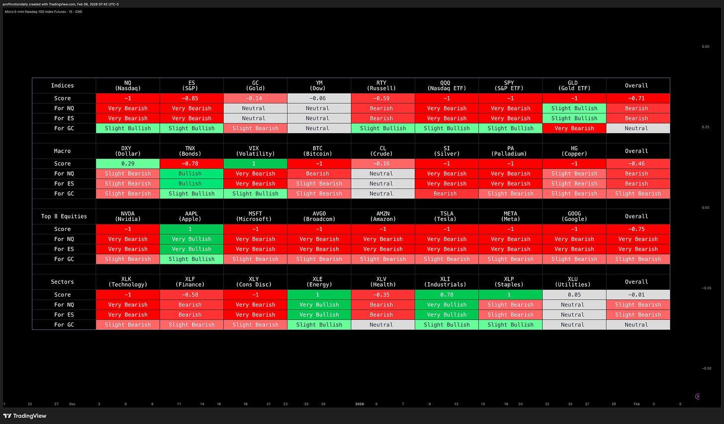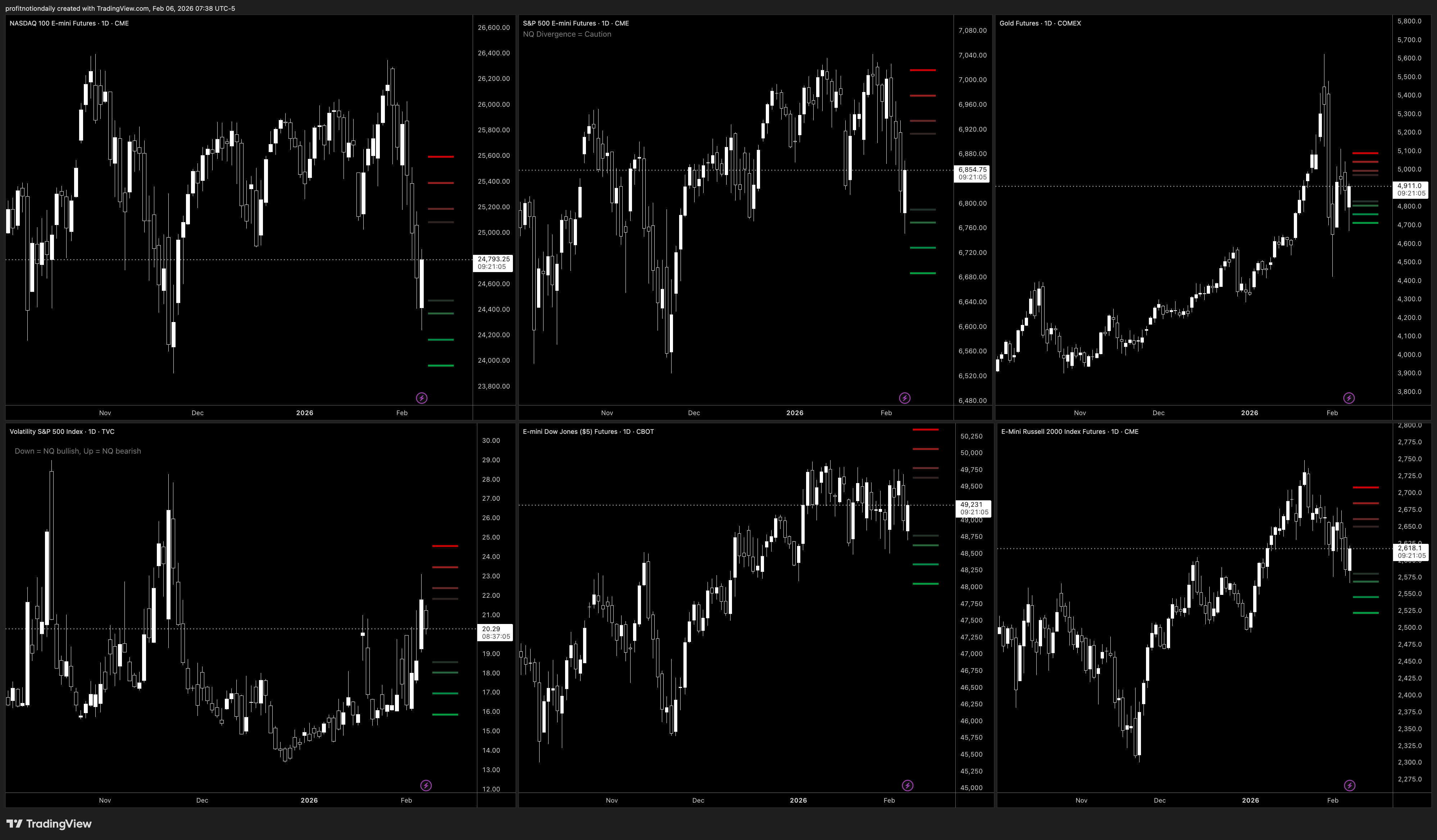 🔴 NQ | 🔴 ES | 🟡 GC | 🟡 YM | 🔴 RTY