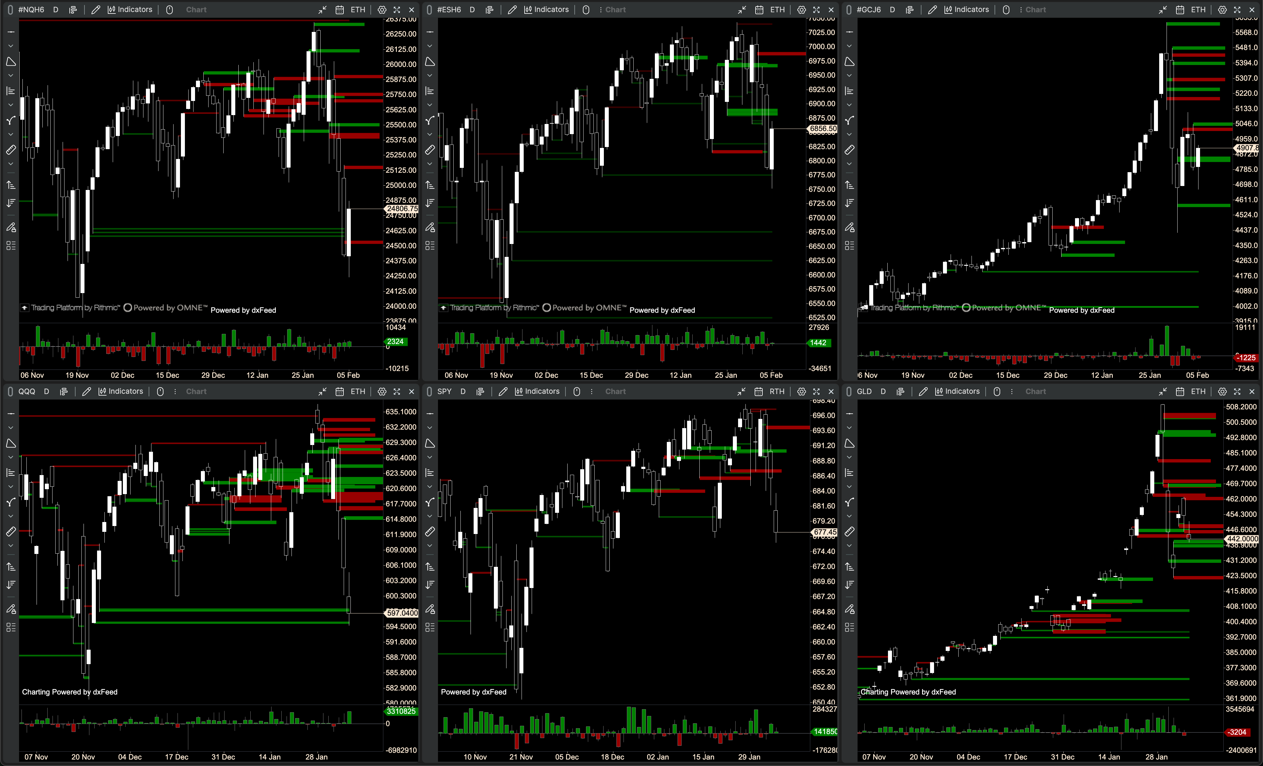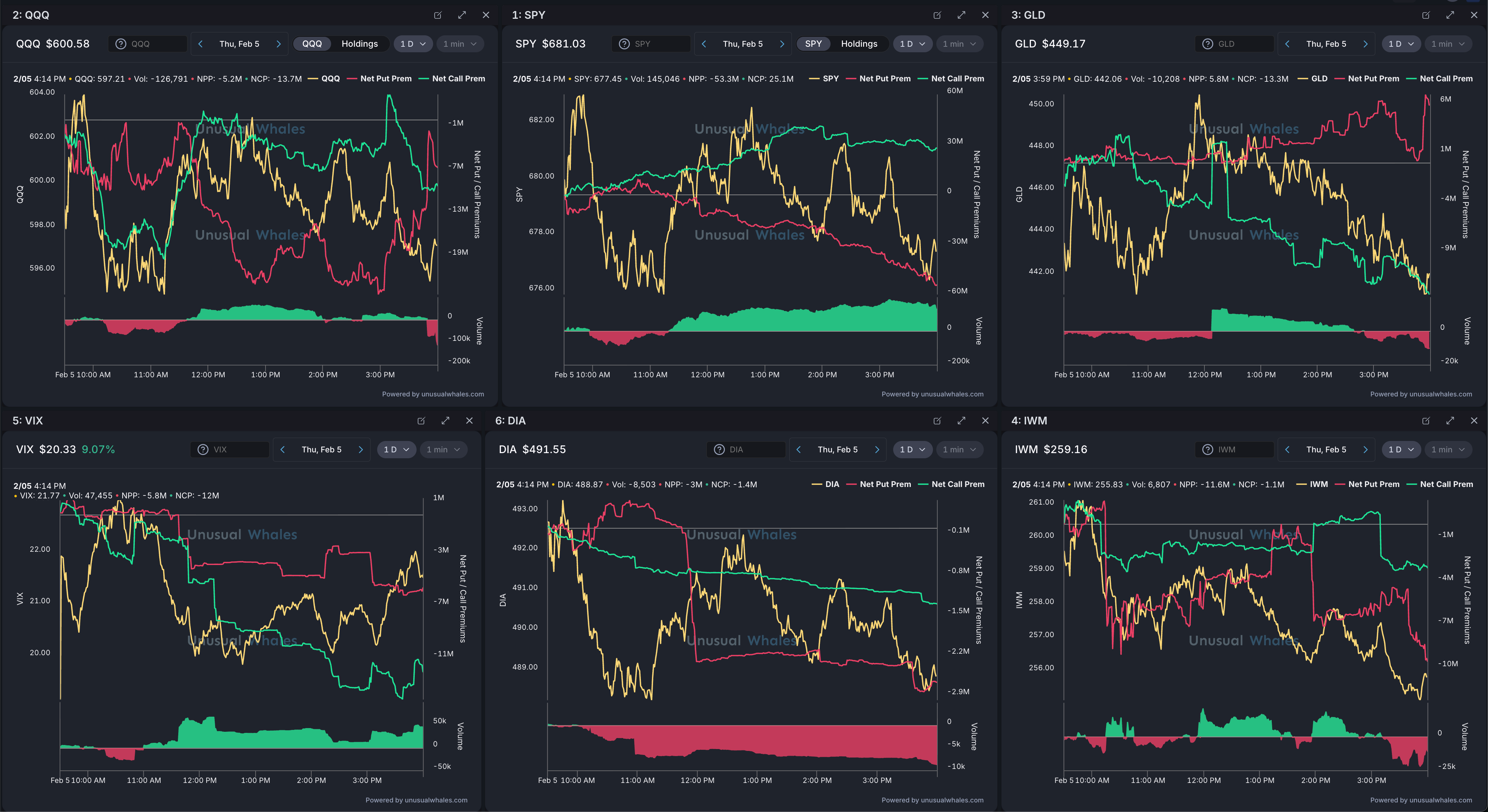 📊 $NQ/$QQQ, $ES/$SPY, $GC/$GLD, $VIX, $YM/$DIA, $RTY/$IWM