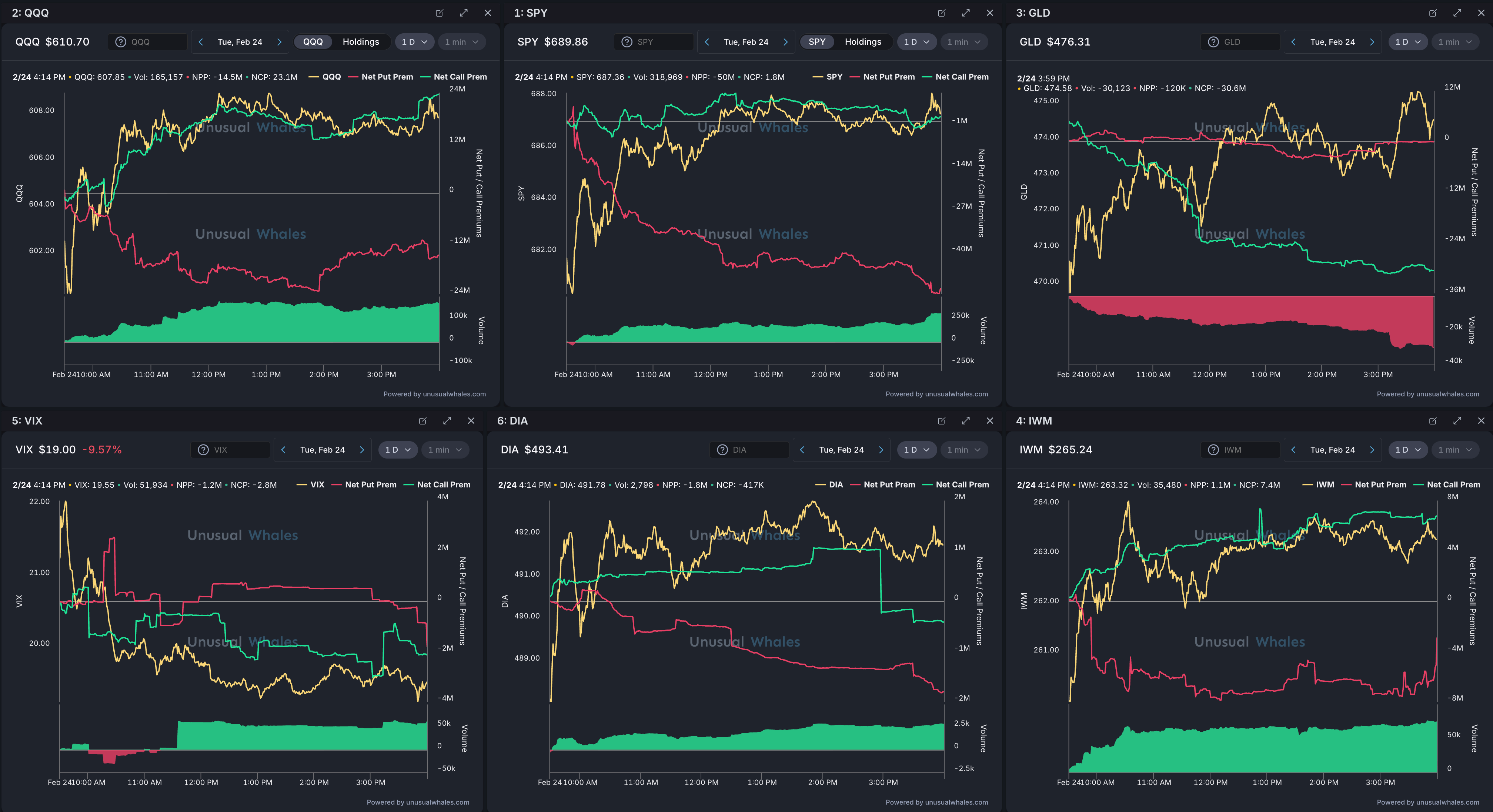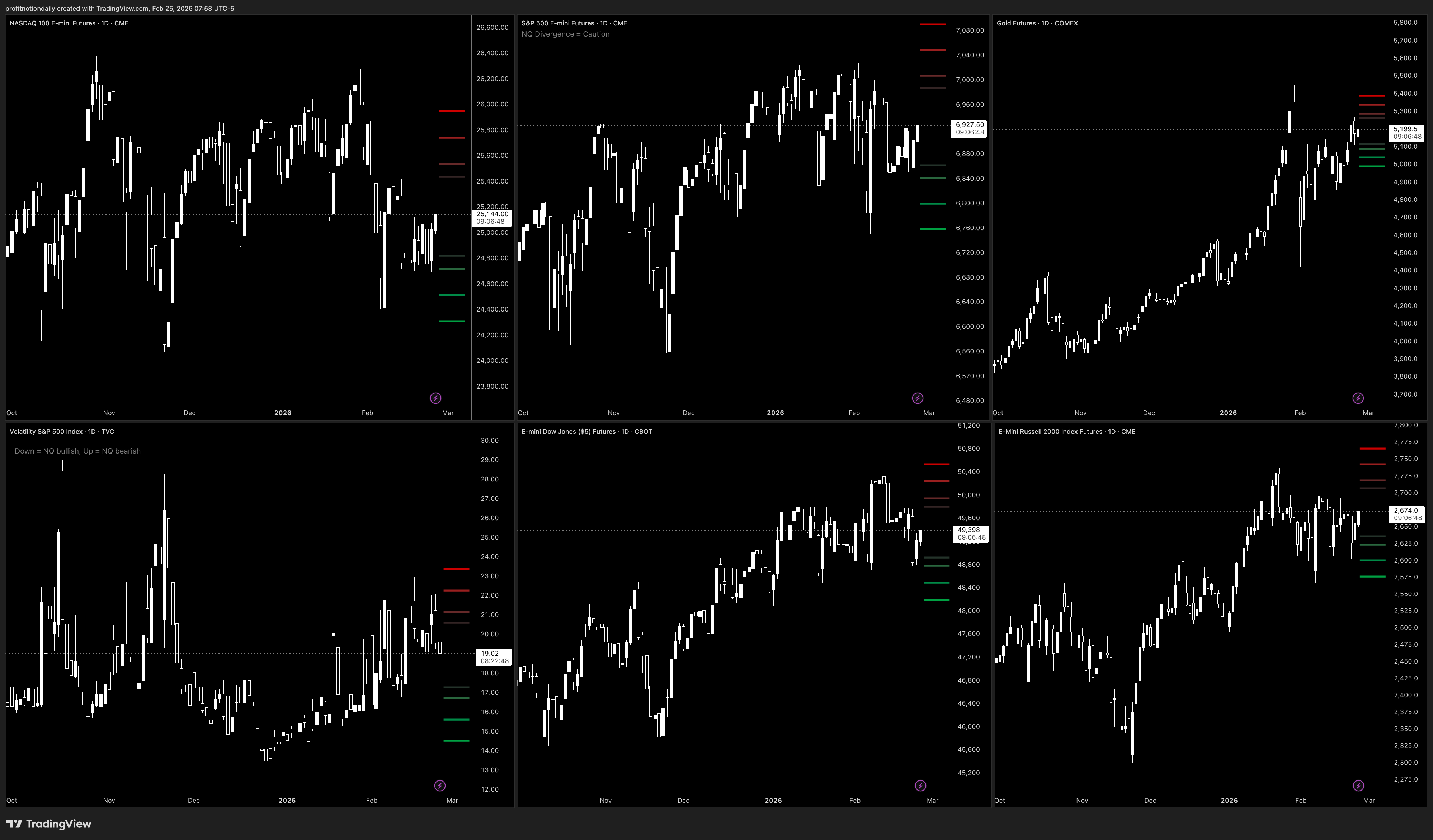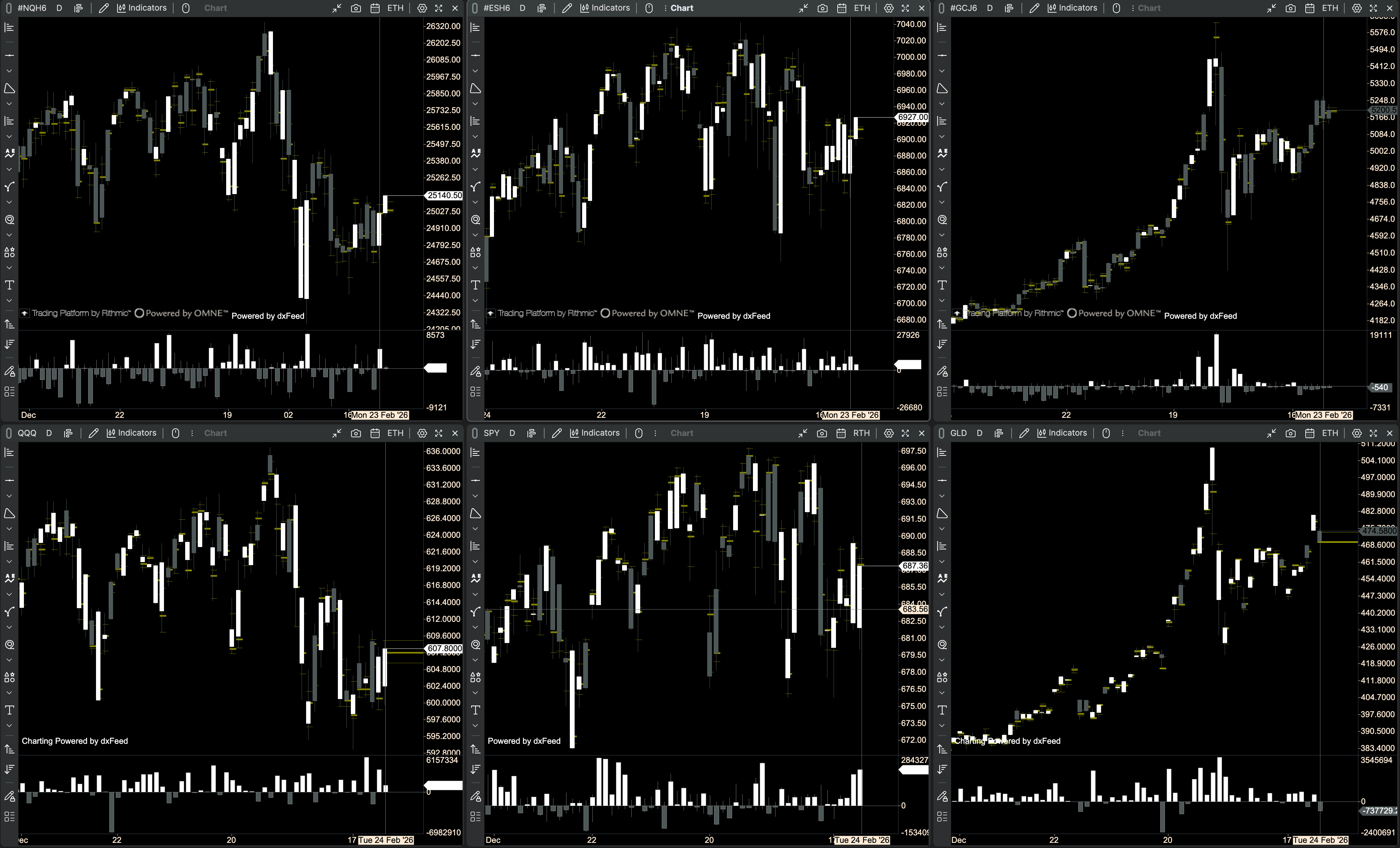 📊 $NQ/$QQQ, $ES/$SPY, $GC/$GLD, $VIX, $YM/$DIA, $RTY/$IWM