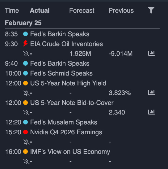NVDA 0.00%↑ earnings. Crude oil inventory.