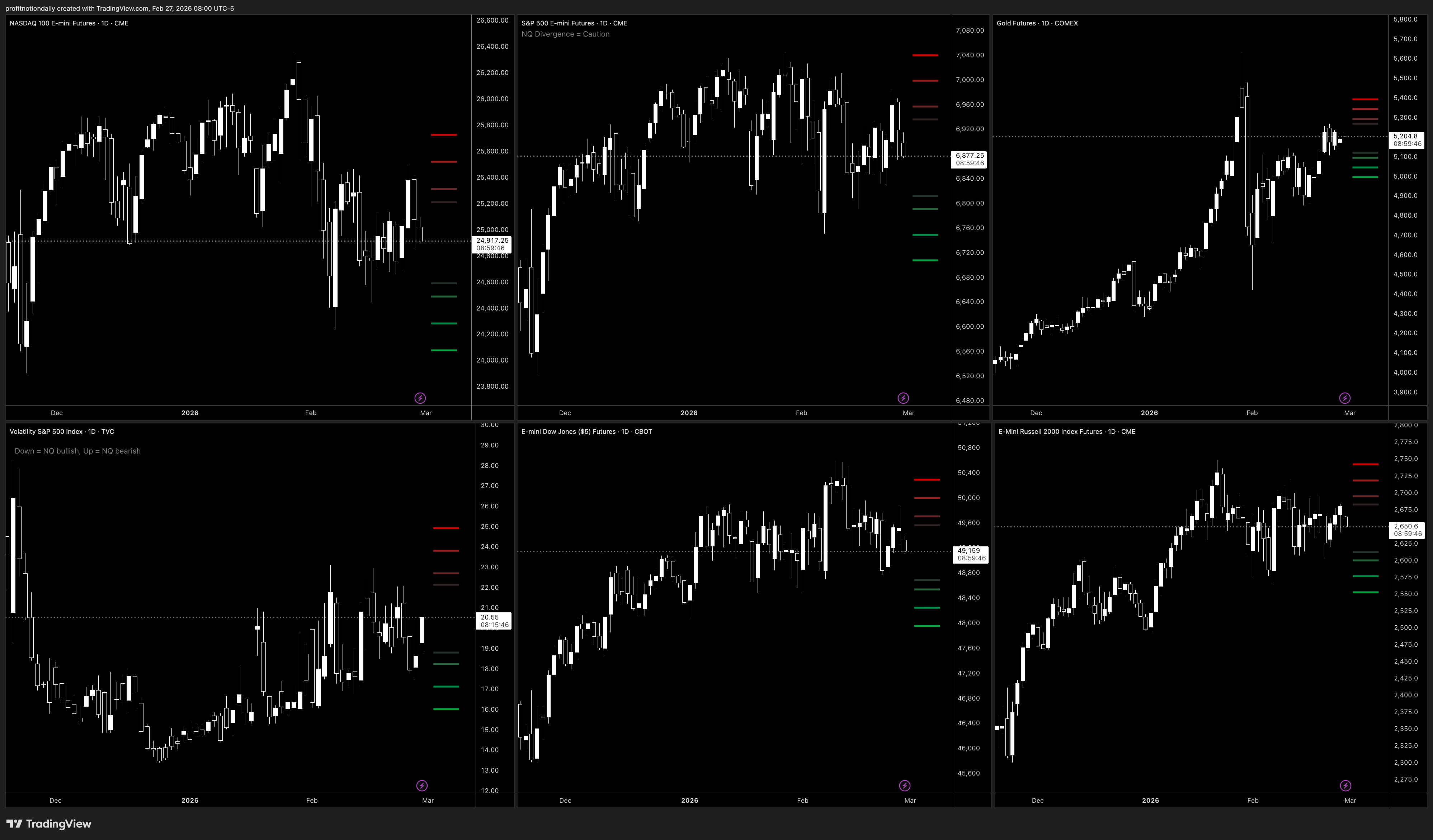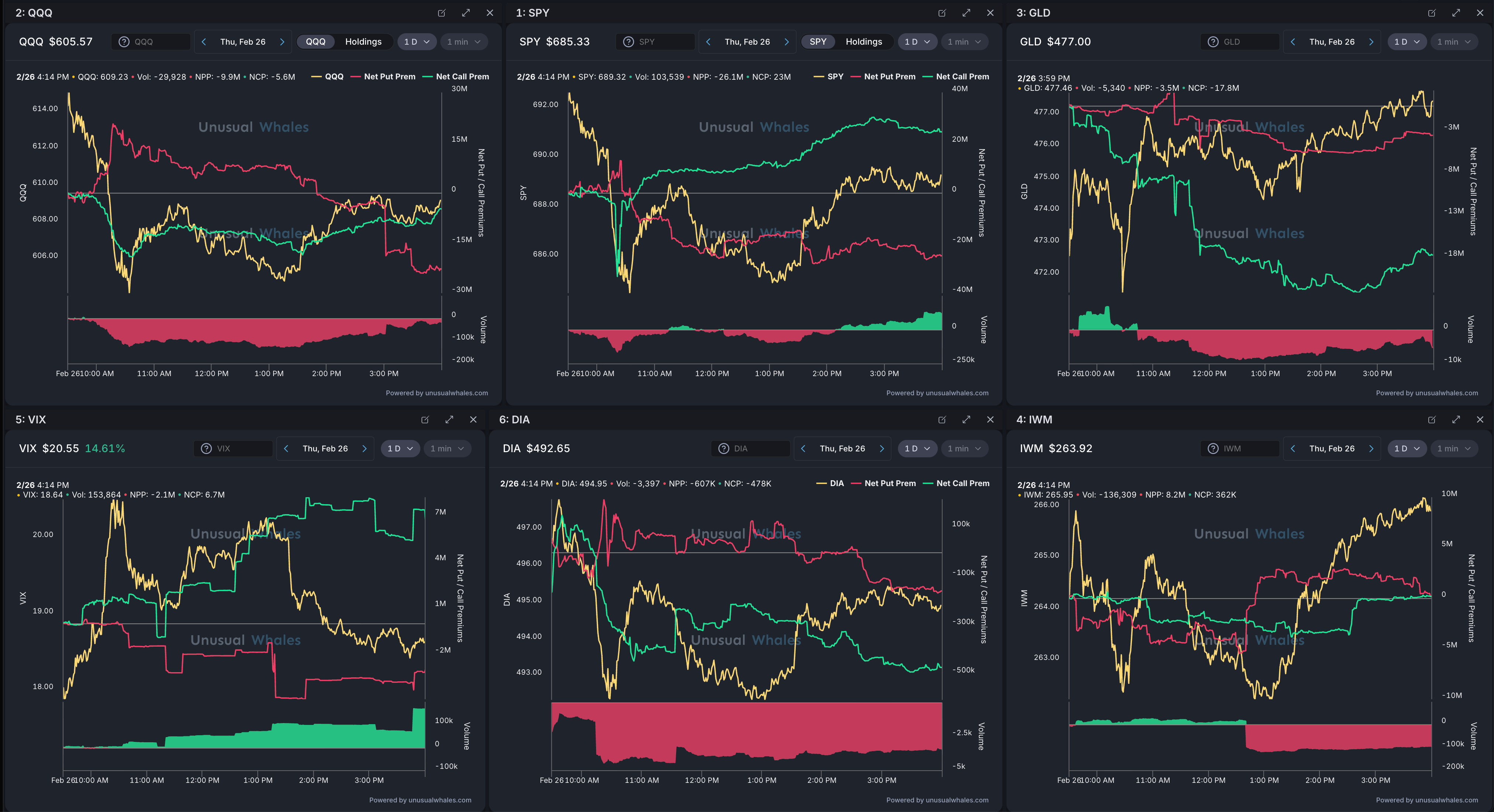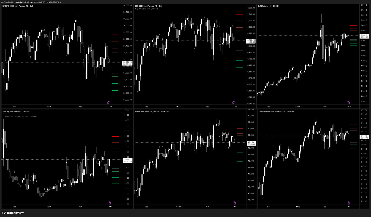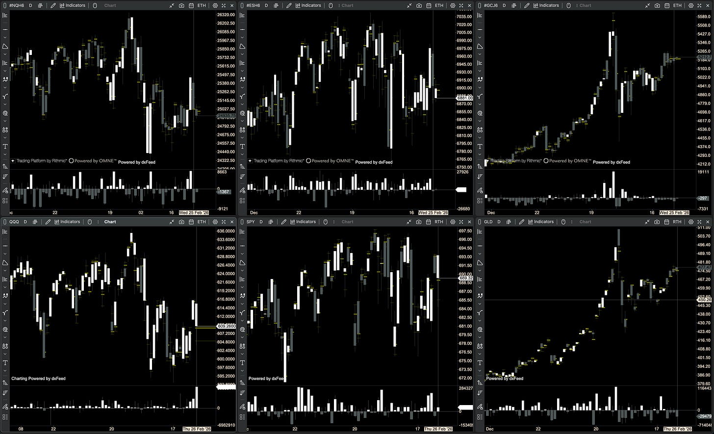 📊 $NQ/$QQQ, $ES/$SPY, $GC/$GLD, $VIX, $YM/$DIA, $RTY/$IWM