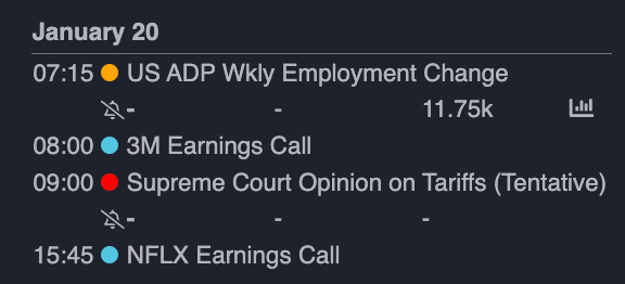Greenland drama ongoing. Court Tariffs news today (?). NFLX earnings.