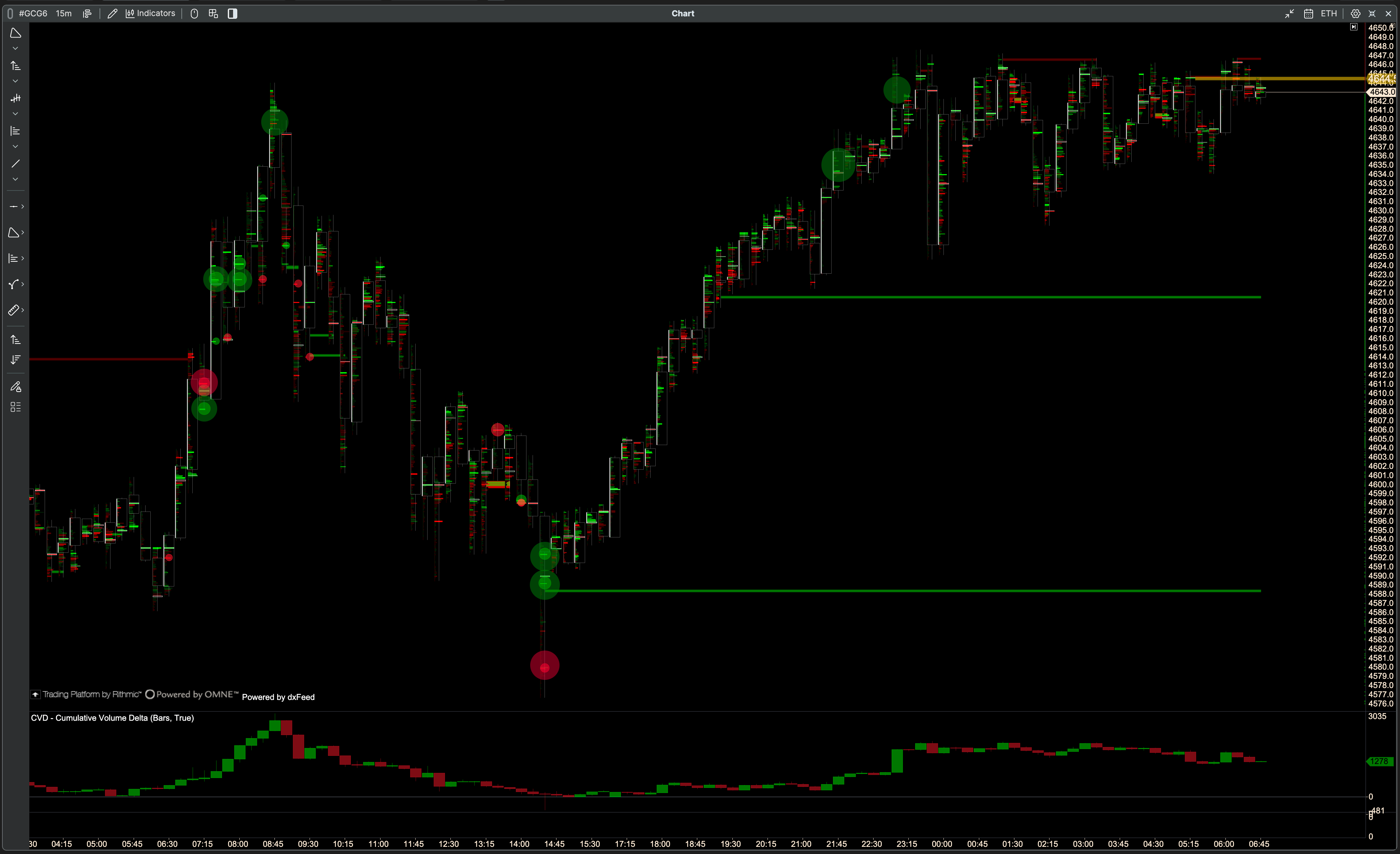 Buyers in control, as sellers tried to take CVD negative but did not succeed.