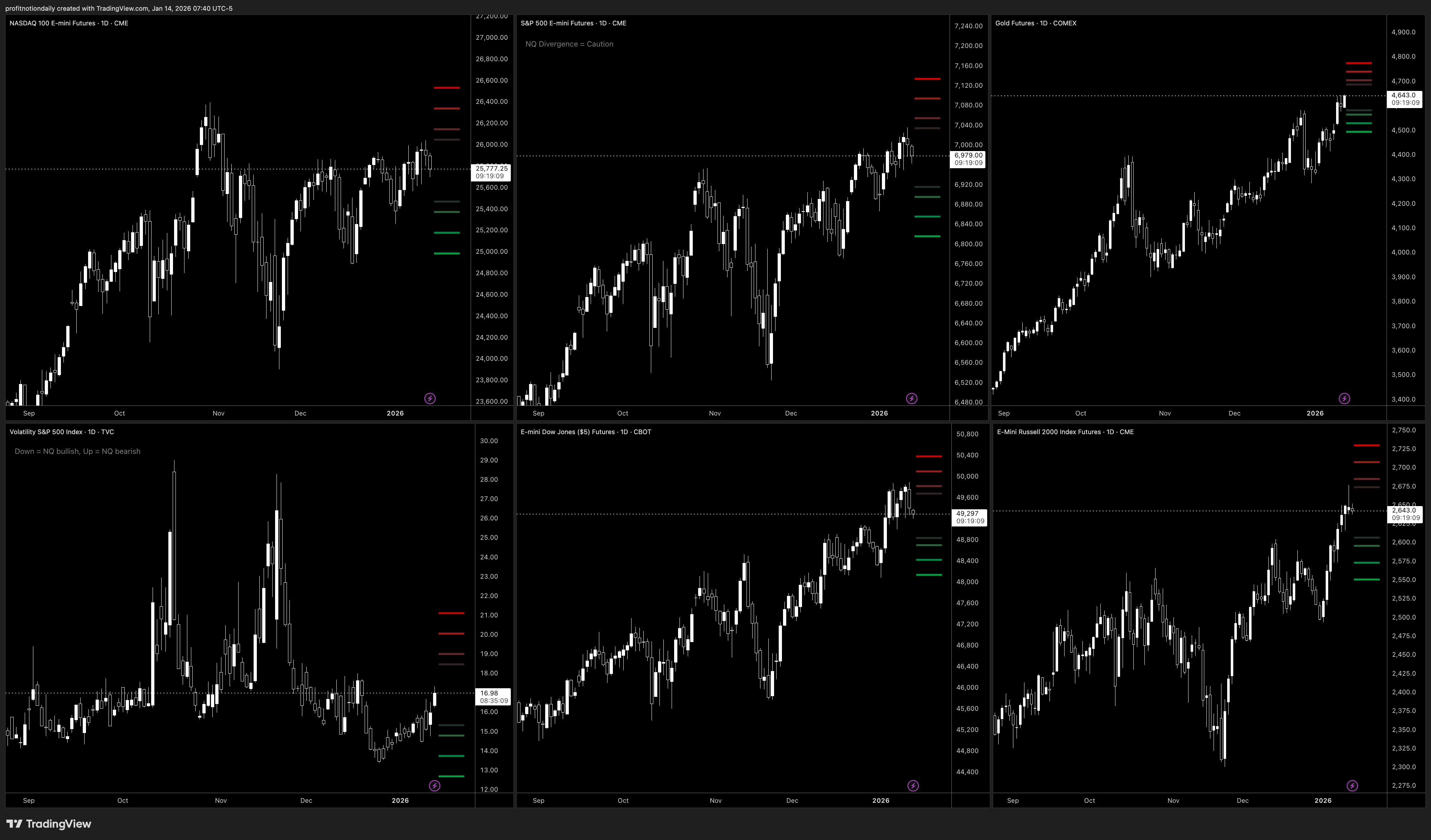 Everything seems to be climbing. VIX pushing higher along with Gold and Russel.
