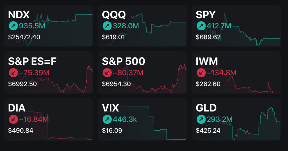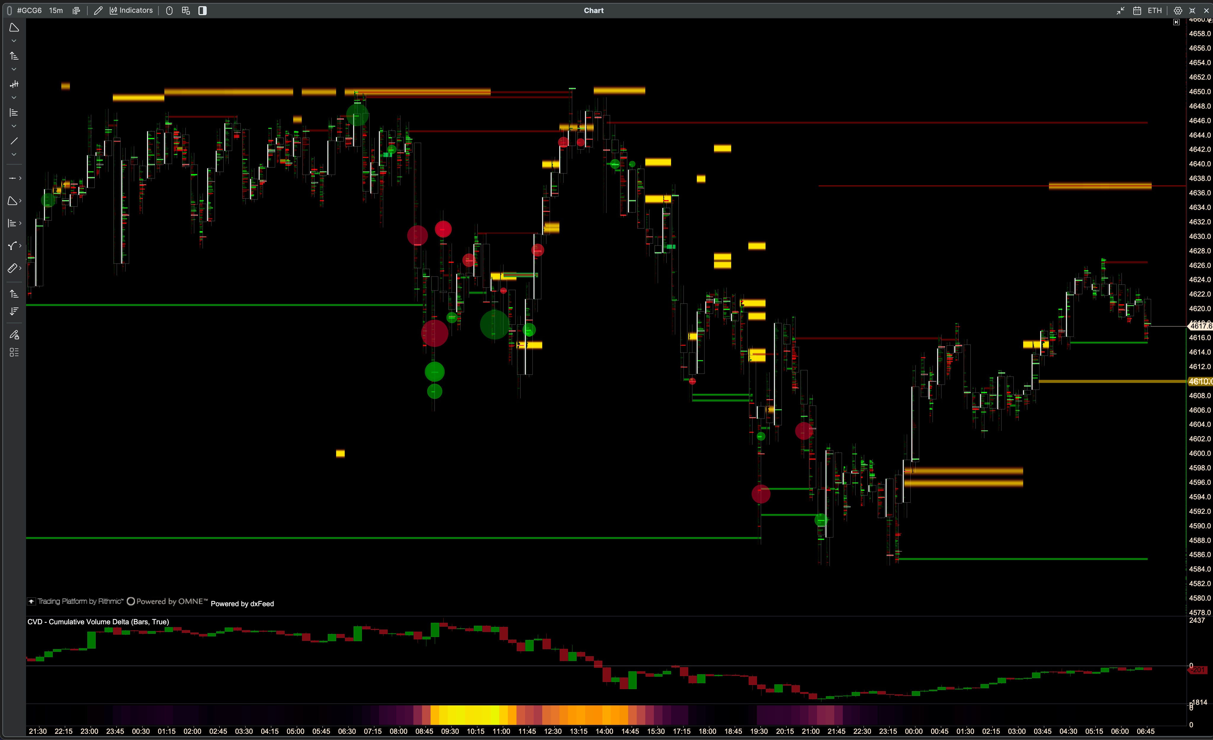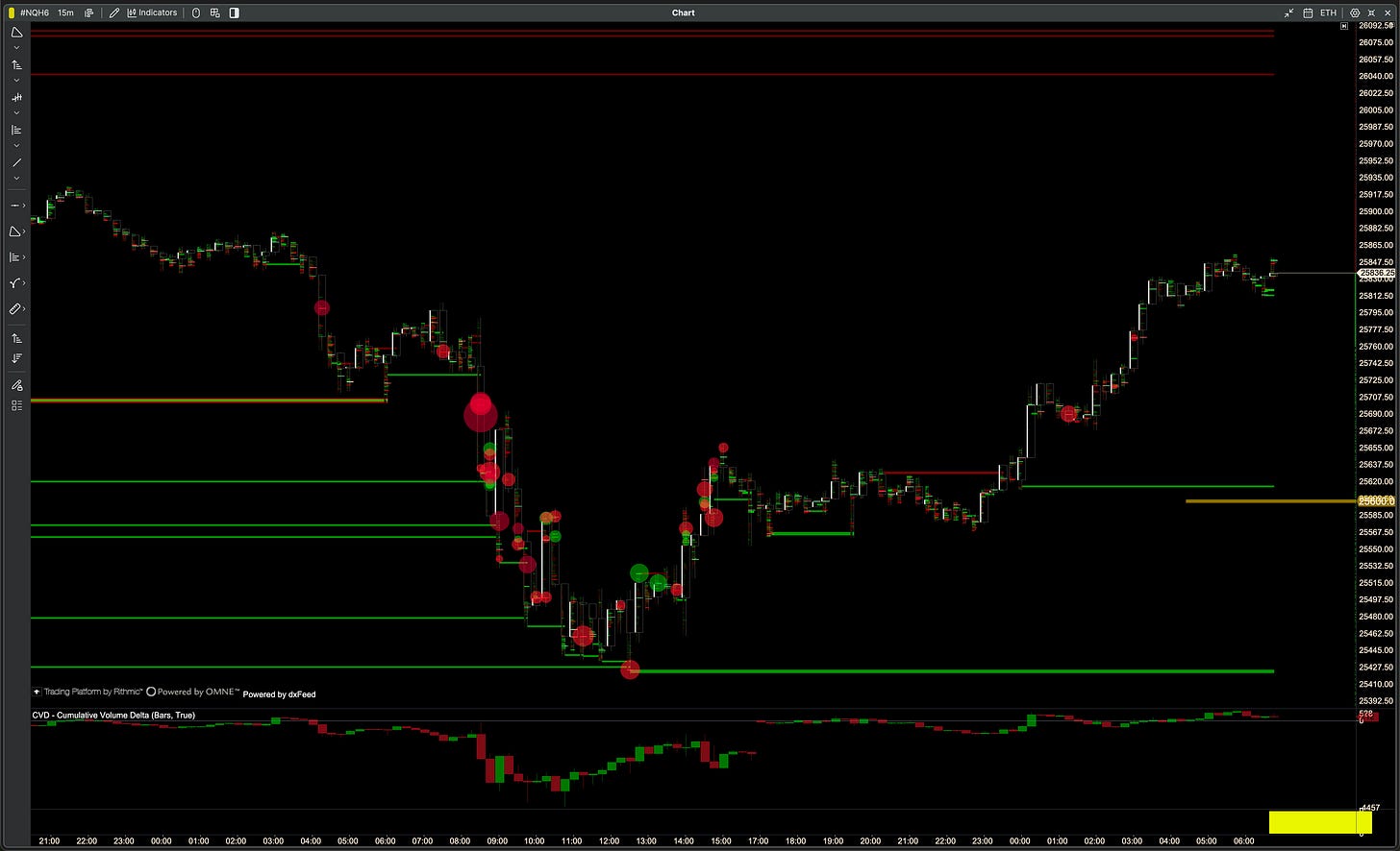 Yesterday and Pre-market Order/Options flow using ATAS-X and SpotGamma