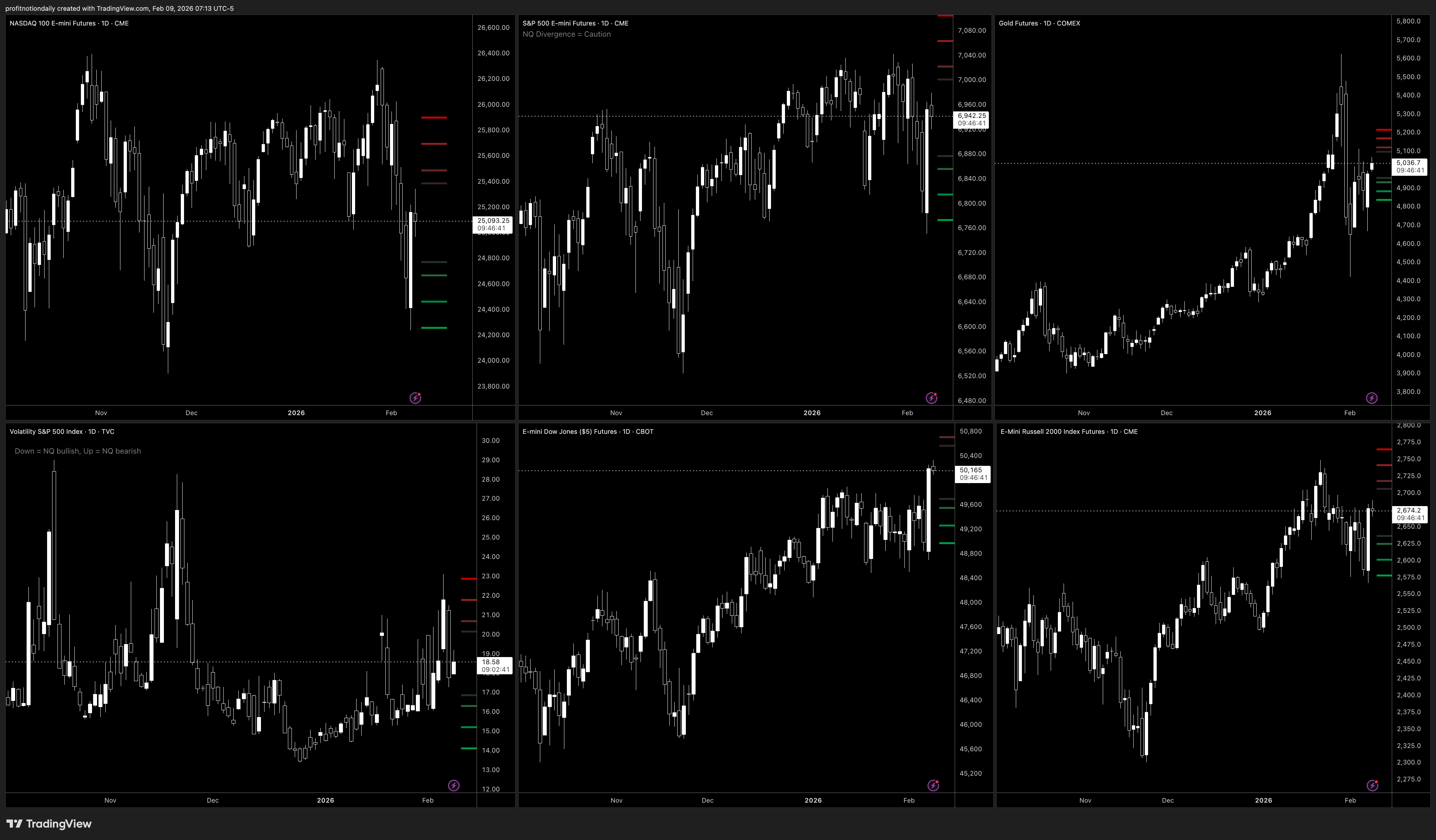 📊 $NQ/$QQQ, $ES/$SPY, $GC/$GLD, $VIX, $YM/$DIA, $RTY/$IWM
