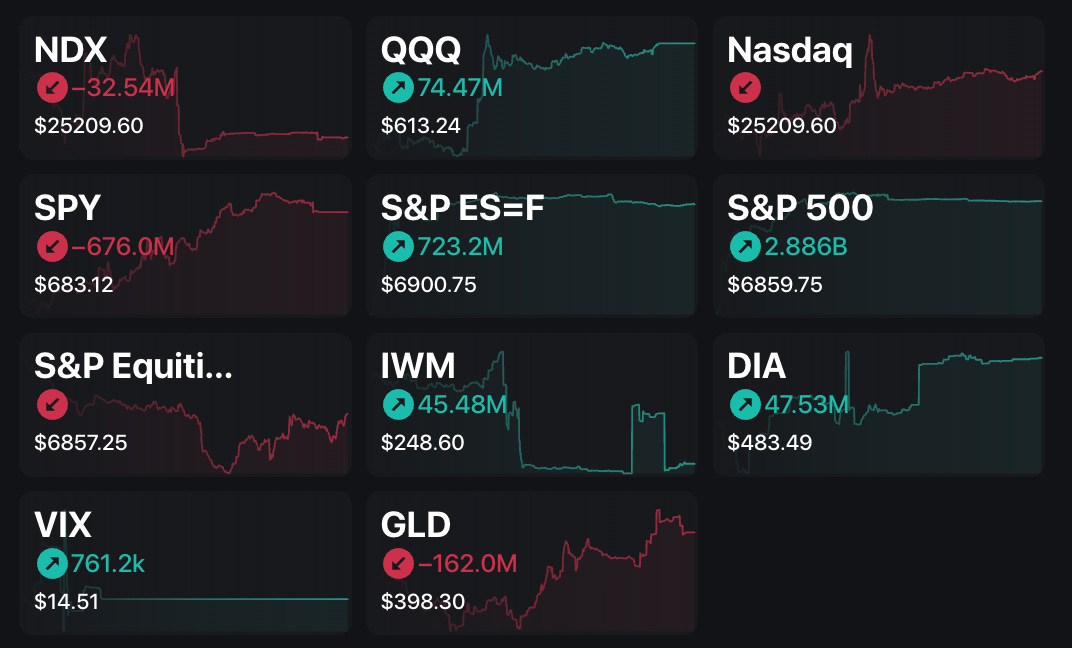 Options flow was very bullish to start the day, but then turned bearish. The majority of trades were ODTE, which very few carrying over into next week. price stayed in negative gamma territory as we bounced between 6900 and 6800.