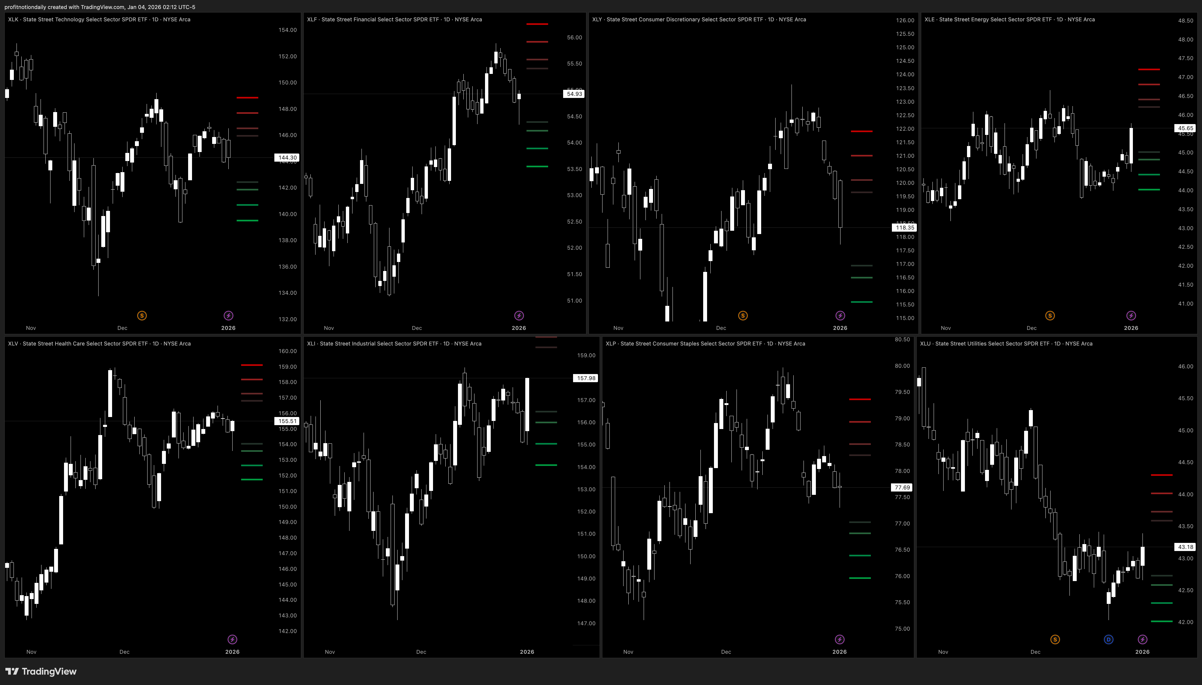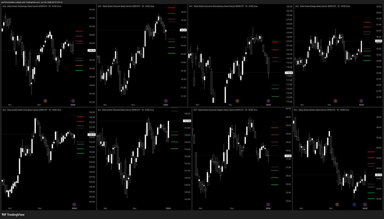 For NQ, ES, GC - Sectors and Macro support more bullish price action, while the Top 8 equities are weighing us down with more bearish action. NVDA, GOOG keeping equities up though.