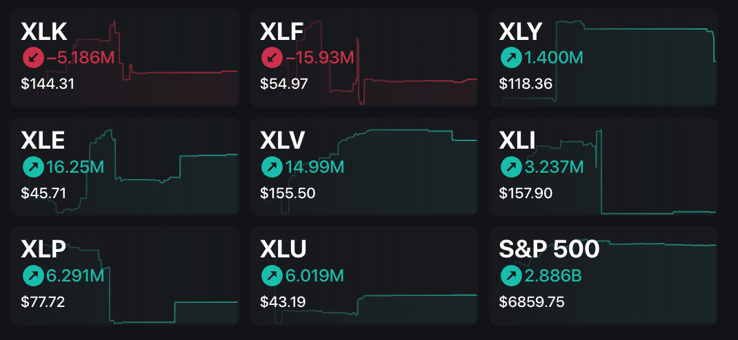 Overall, Options is mostly bullish across the sectors, with tech and finance being the laggards. Consumer discretionary and staples seem to be the weakest though.
