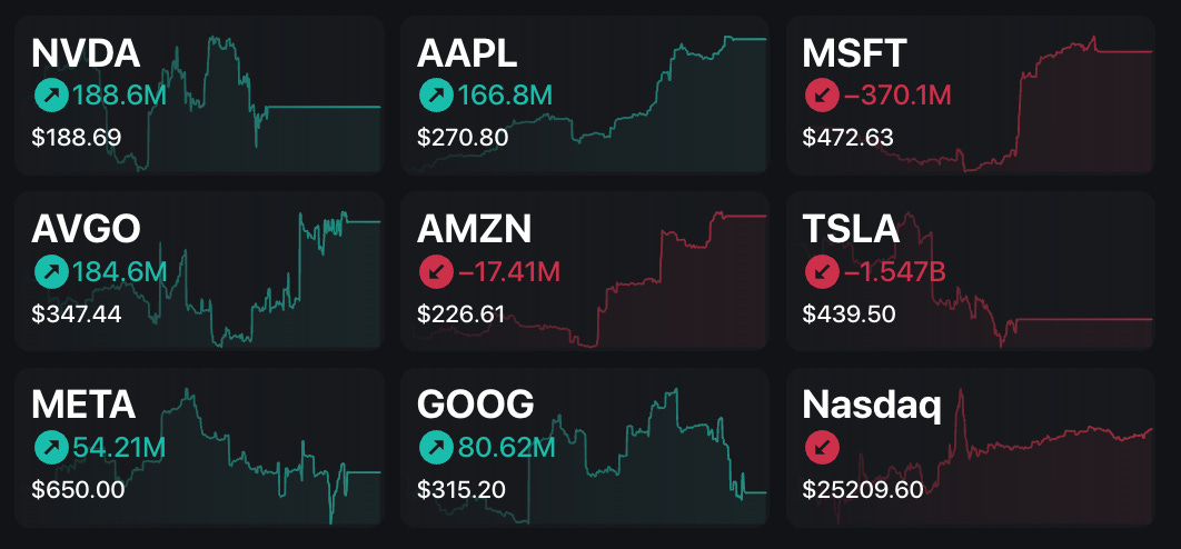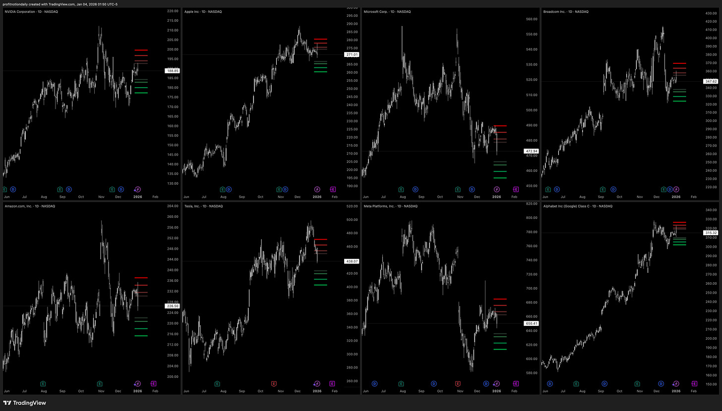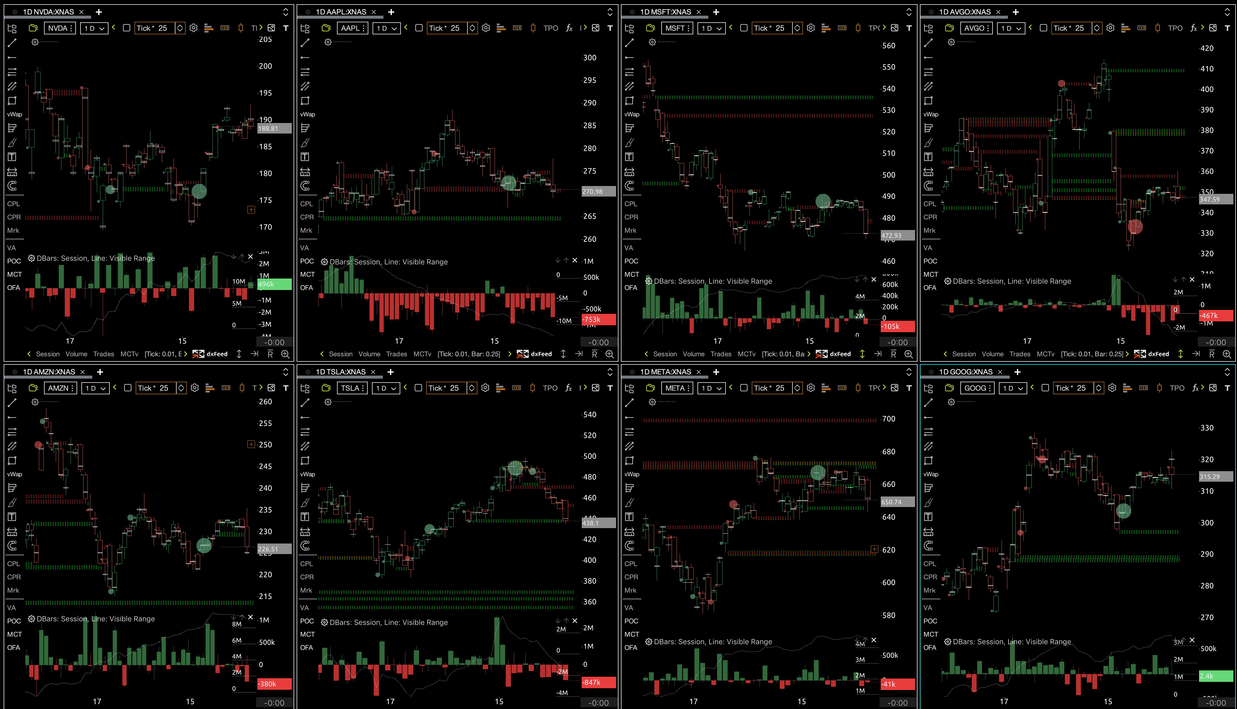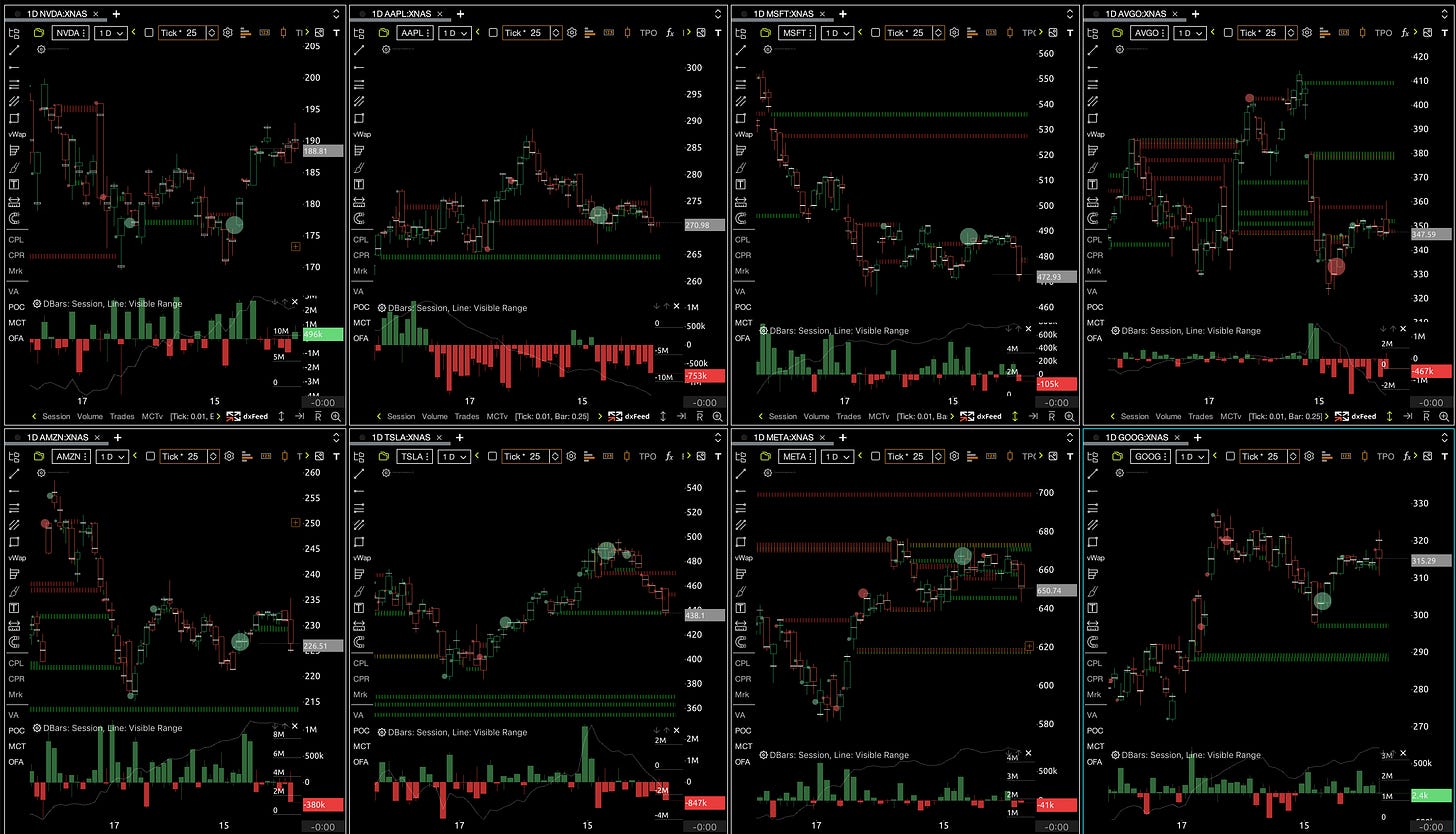 Overall, NVDA and GOOG are leading us upward, with most names having a strong sell-off on Friday. This makes me cautious for longs on NQ to start the week. Lets see how price develops, and if support and bullish flow holds for all the names.