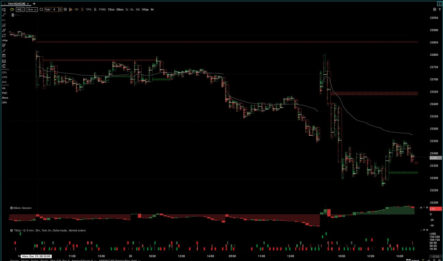 CVD staying bearish for the week, with more clusters of big trades (10 to 50+ contracts).