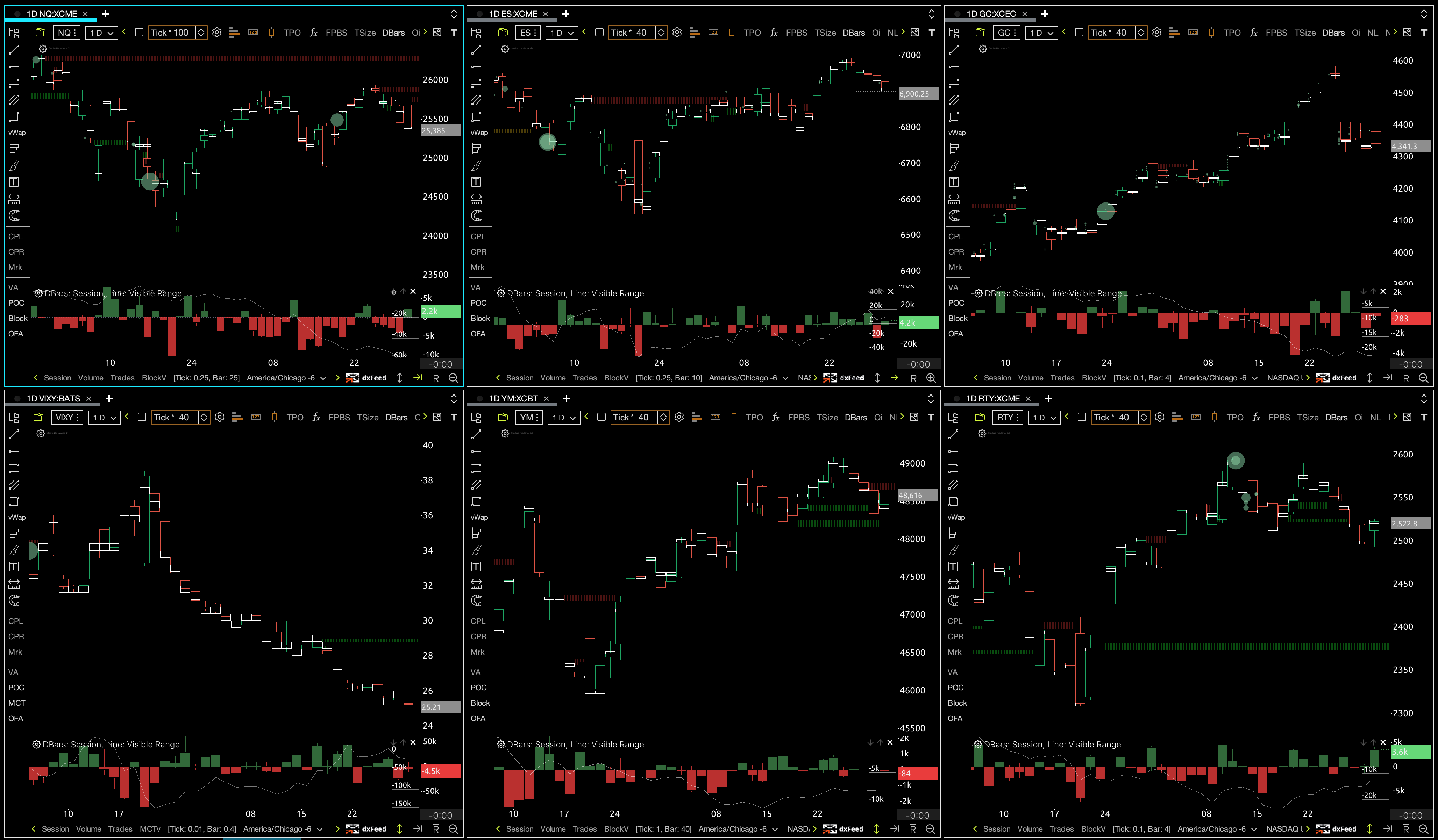 ES order flow looks the strongest bullish, followed by NQ. GC seems the most bearish, so will be watching that.