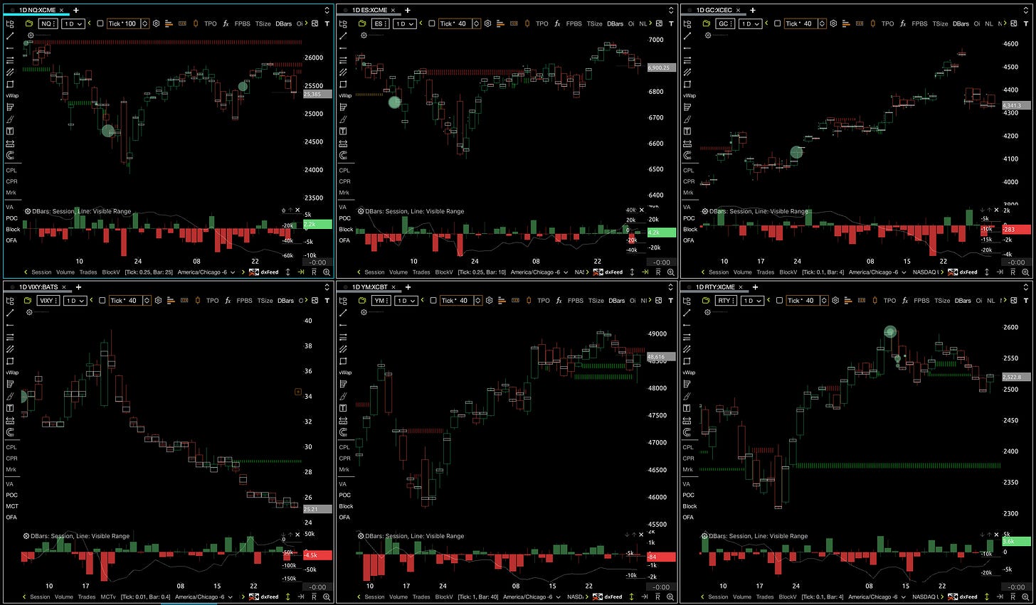Overall, we did see really nice sell-off in NQ, ES, GC… but with a strong close with RTY and YM, along with VIX at lows, makes me think traders and investors are still willing to put money to work, and we just need reasons to rotate back.