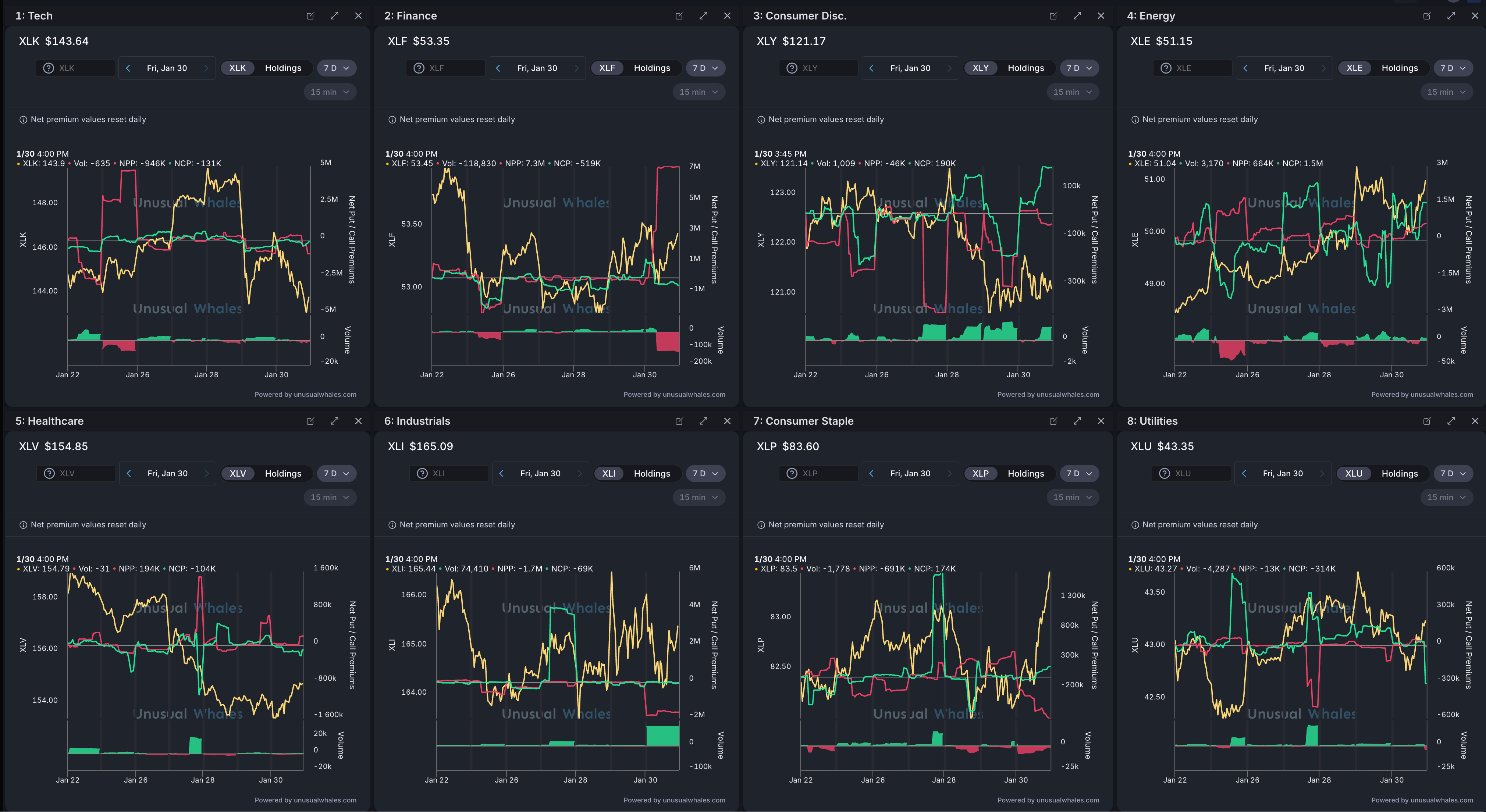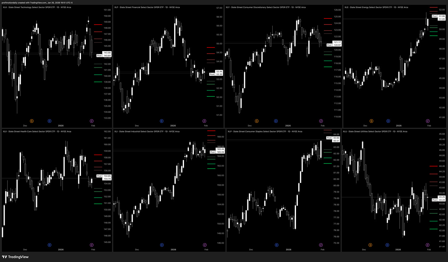 Tech and Financials are pulling back and traders are leaning more protective there, while Energy is the clearest strength with more upside interest. Consumer and Industrials look mixed but not breaking down. Staples are getting strong buying, and Healthcare and Utilities are still sluggish, which usually shows money is rotating into safer areas instead of chasing risk. Overall, the market tone feels more defensive than aggressive going into next week.