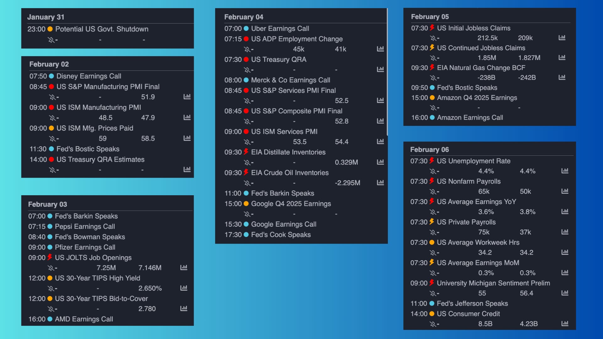 Potential government shutdown, Manufacturing PMI, Jobs openings, Jobless claims, Non-farm payroll, and lots of earnings.