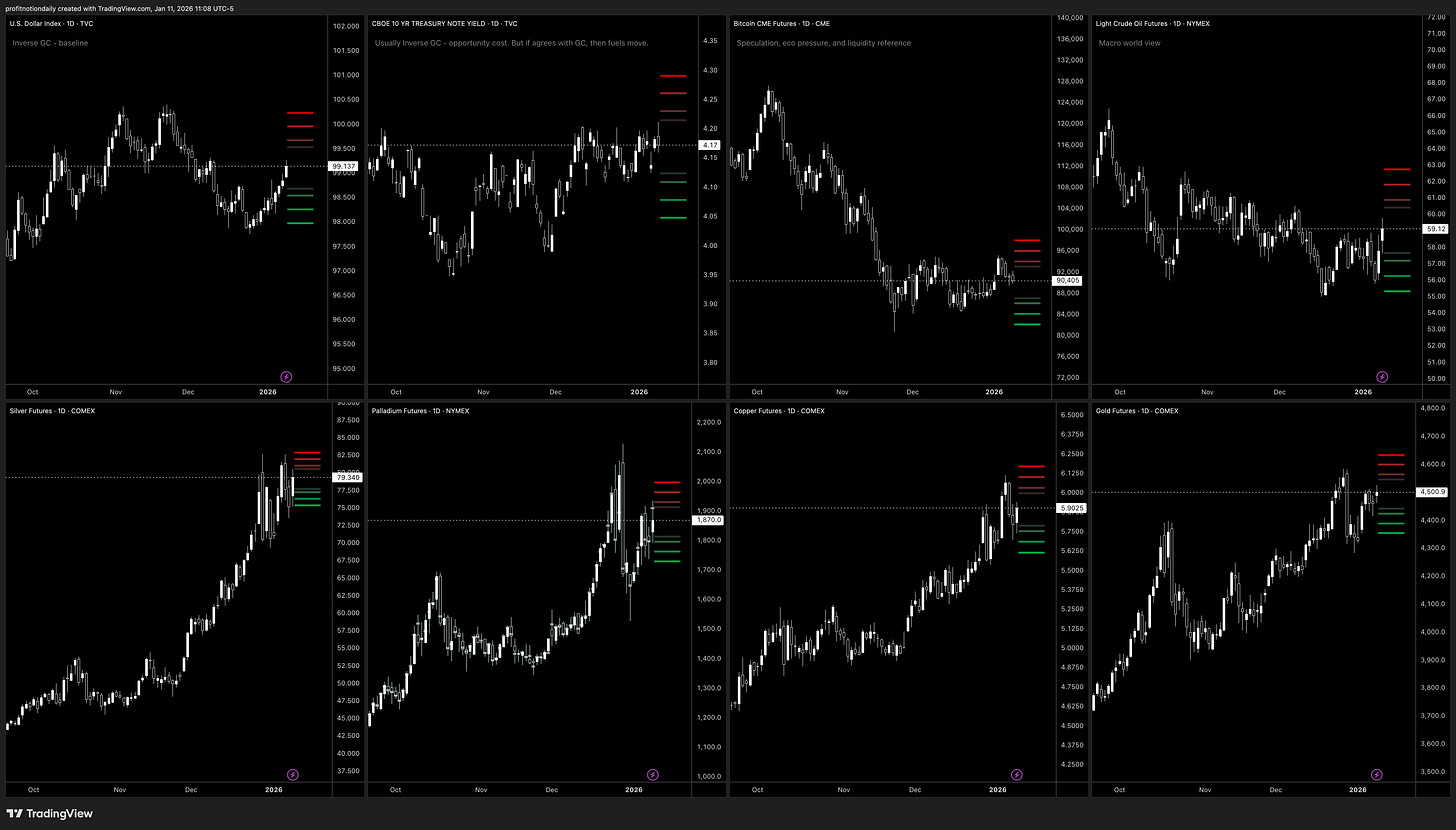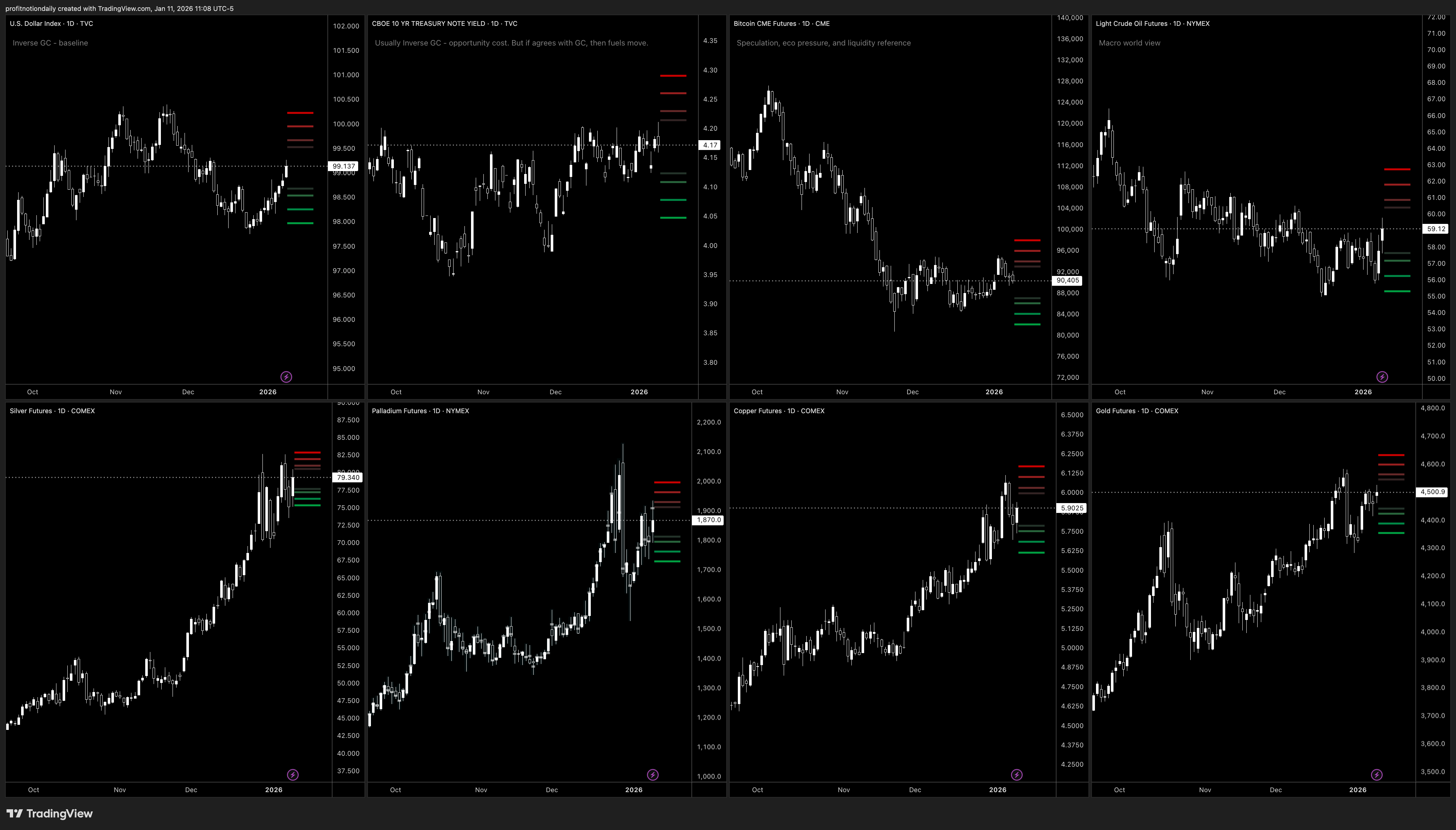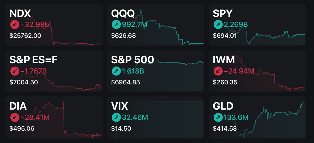 The Dollar (DXY) and Treasury Yields (TNX) are starting to move up again, which can make it harder for equities to keep running. Bitcoin and Oil still look weak and choppy. The options flow in their ETF proxies is still leaning bearish (IBIT/USO)… lets see if that continues next week.