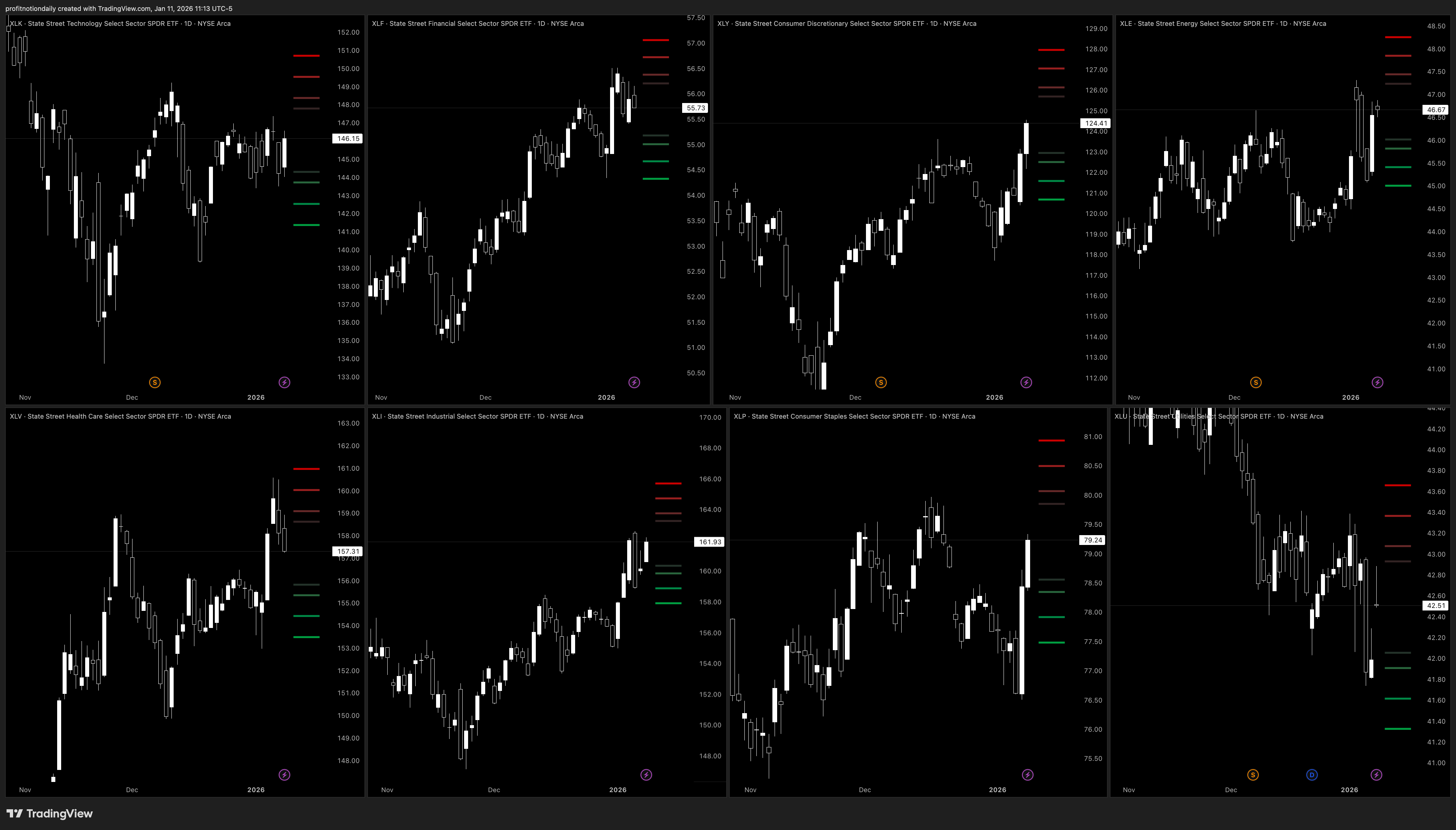 Tech (XLK) didn’t lead—it mostly moved sideways and still looks stuck in a range.