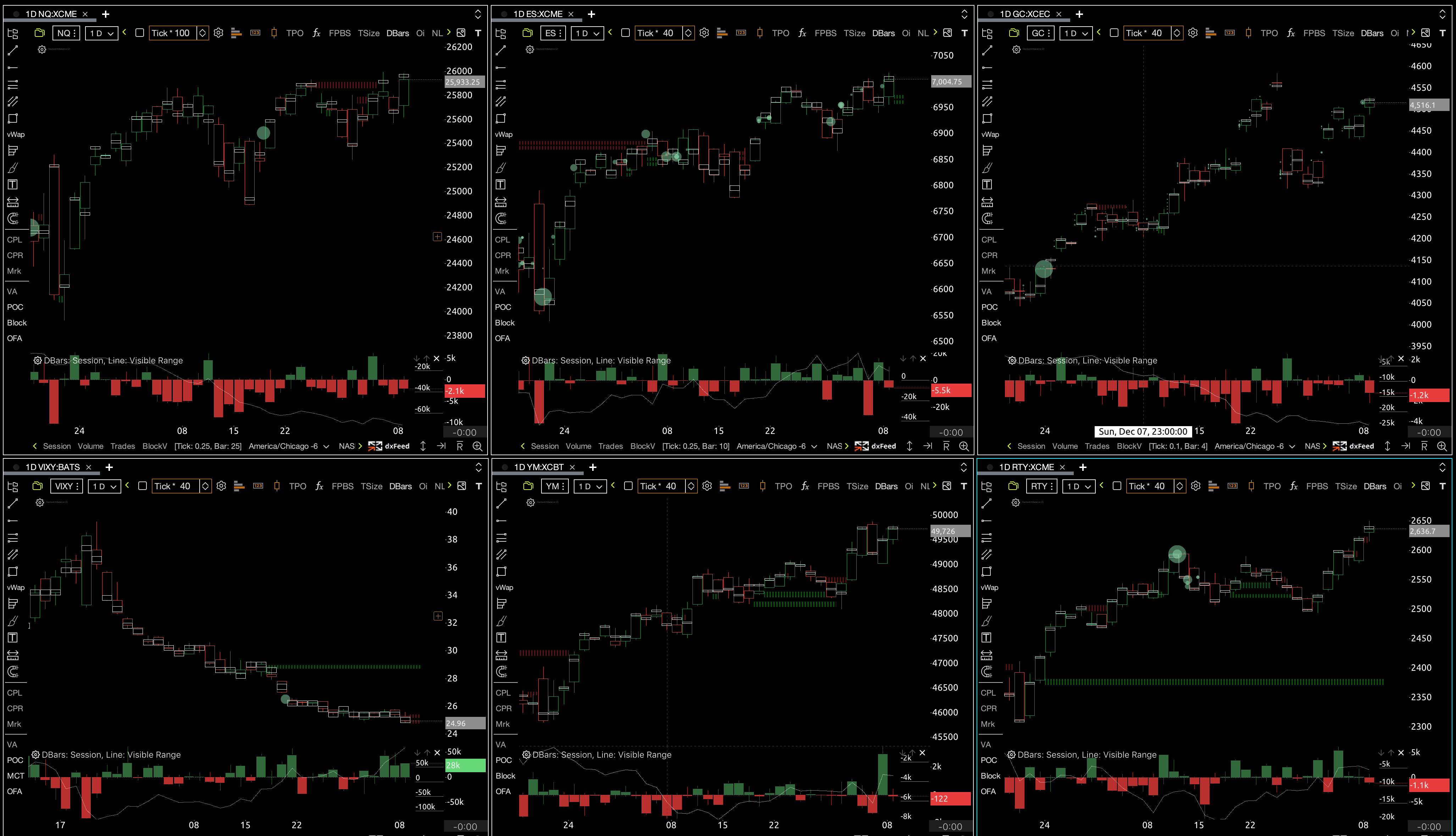 For order flow, we saw heavy selling delta during the mid-week drop, but price eventually reclaimed and squeezed higher anyway. Sellers likely getting absorbed/trapped which pushed us higher as they had to cover.