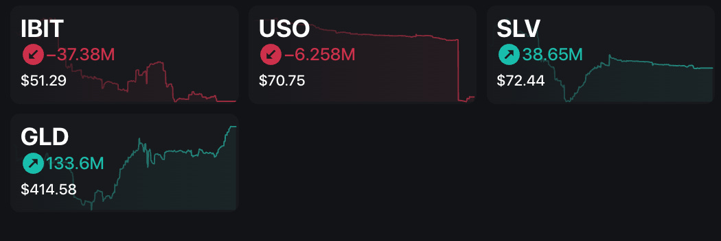 Gold and Silver are trending up and both are seeing strong bullish options flow (GLD/SLV), and Copper also holding near highs.