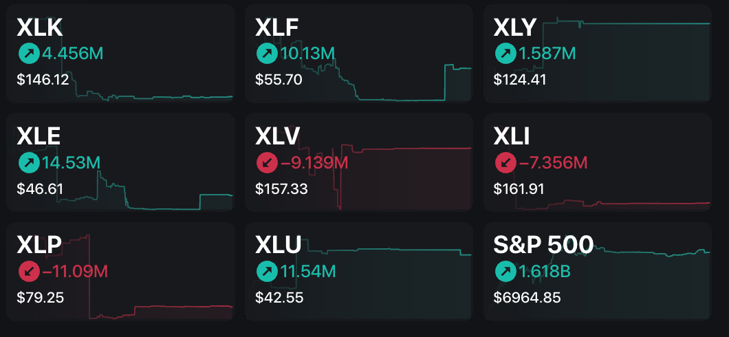 Utilities (XLU) still looks weak on price, but the options flow was bullish, which can be a hint that some traders are starting to play defense even with the market up.